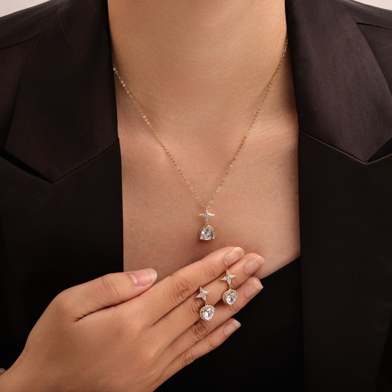 Messing Schmuck Set, Anhänger & Ohrring, goldfarben plattiert, mit kubischem Zirkonia, 10mm, 8mm, verkauft von setzen