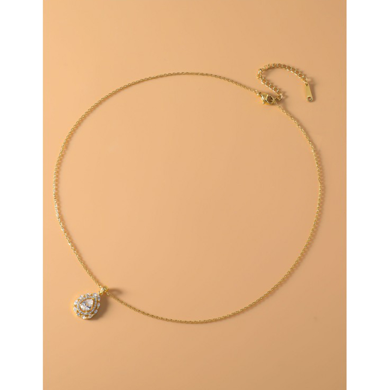 Messing Mode Schmuckset, Stud Ohrring & Halskette, Tropfen, plattiert, 2 Stück & Micro pave Zirkonia & für Frau, keine, verkauft von setzen