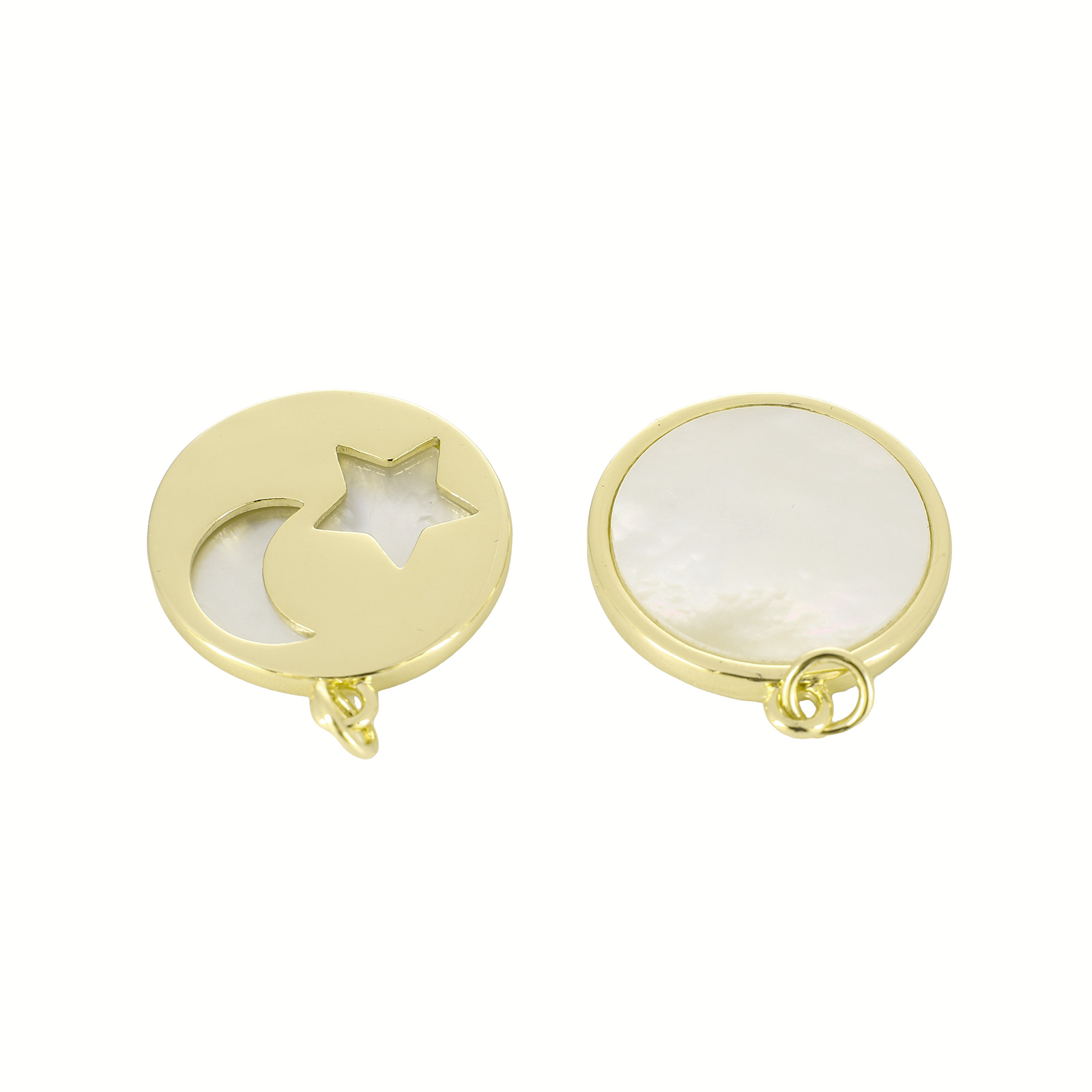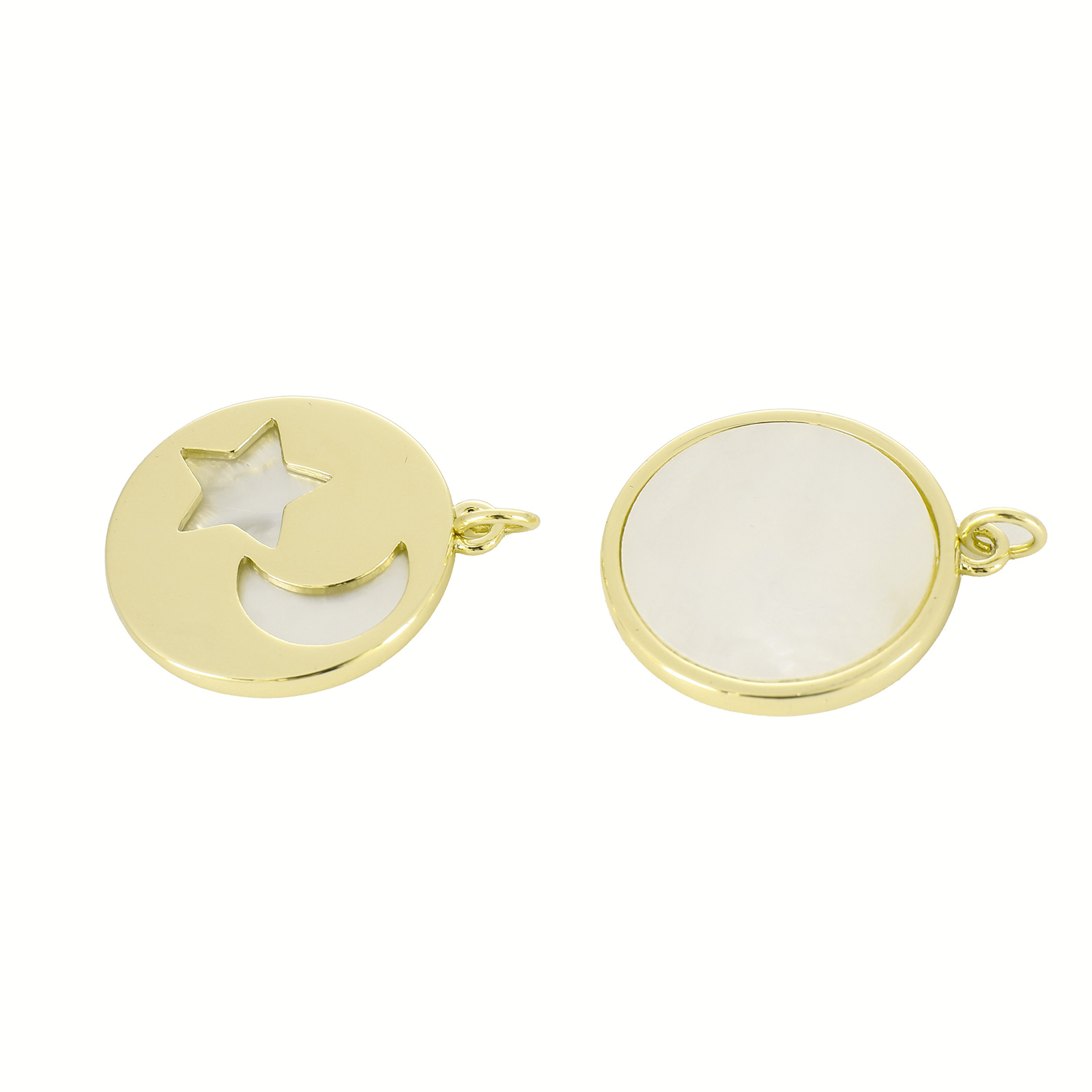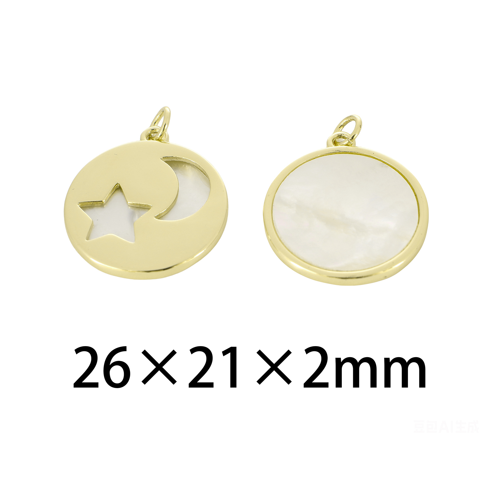 Messing Muschel Anhänger, mit Weiße Muschel, flache Runde, goldfarben plattiert, DIY, 26x21x2mm, verkauft von PC