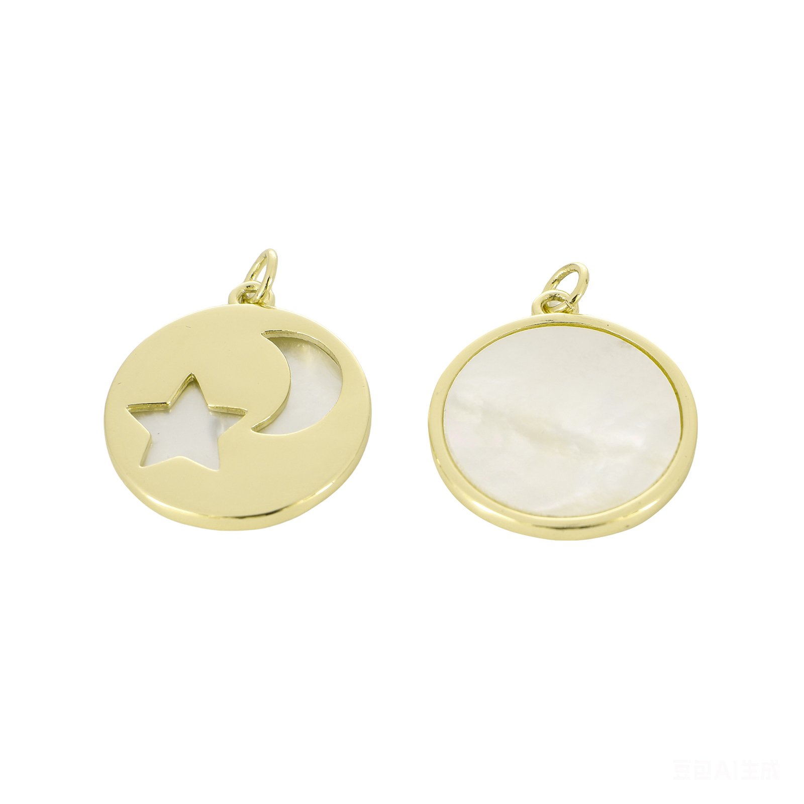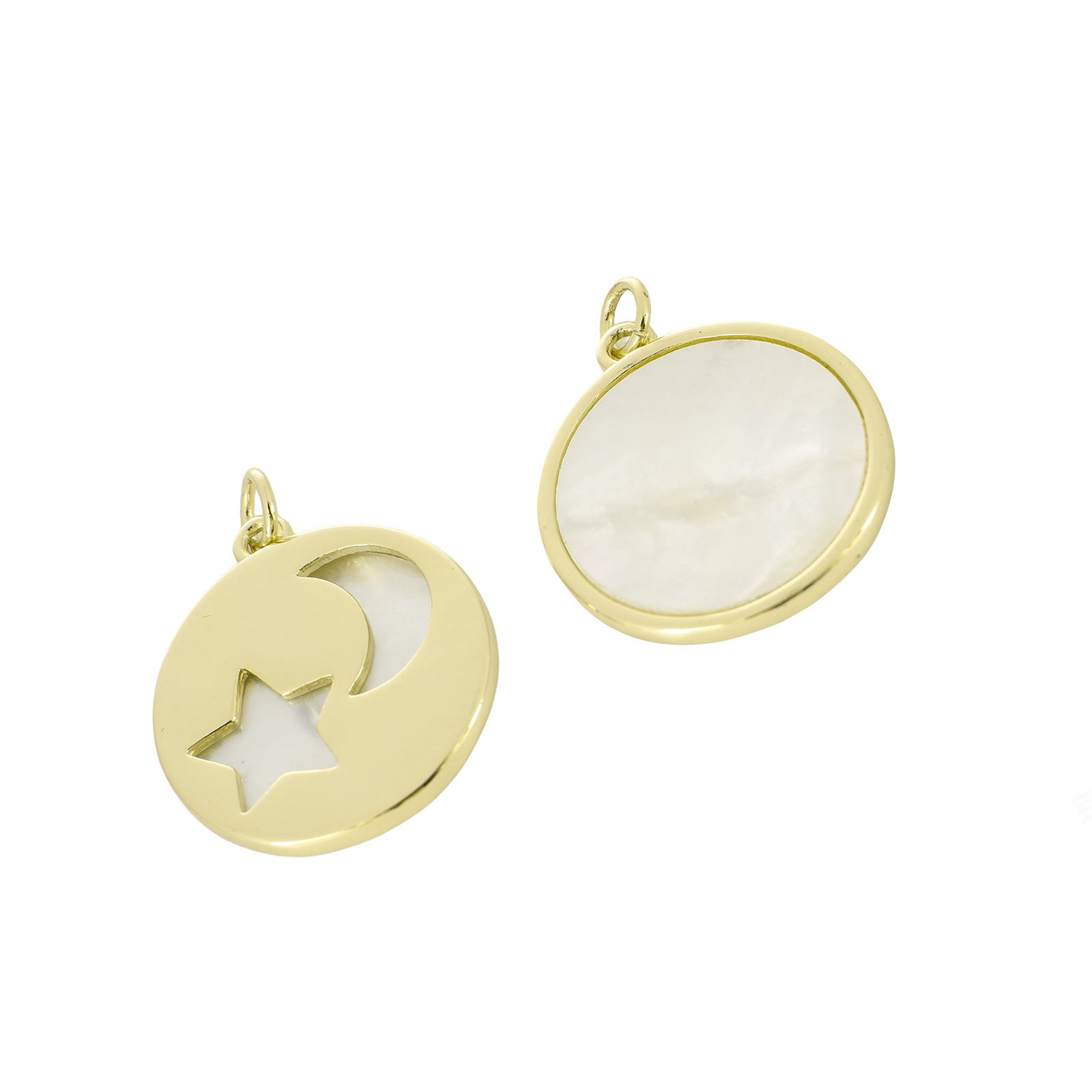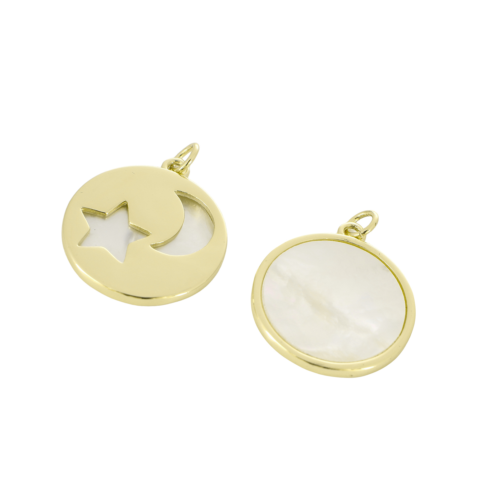 Messing Muschel Anhänger, mit Weiße Muschel, flache Runde, goldfarben plattiert, DIY, 26x21x2mm, verkauft von PC
