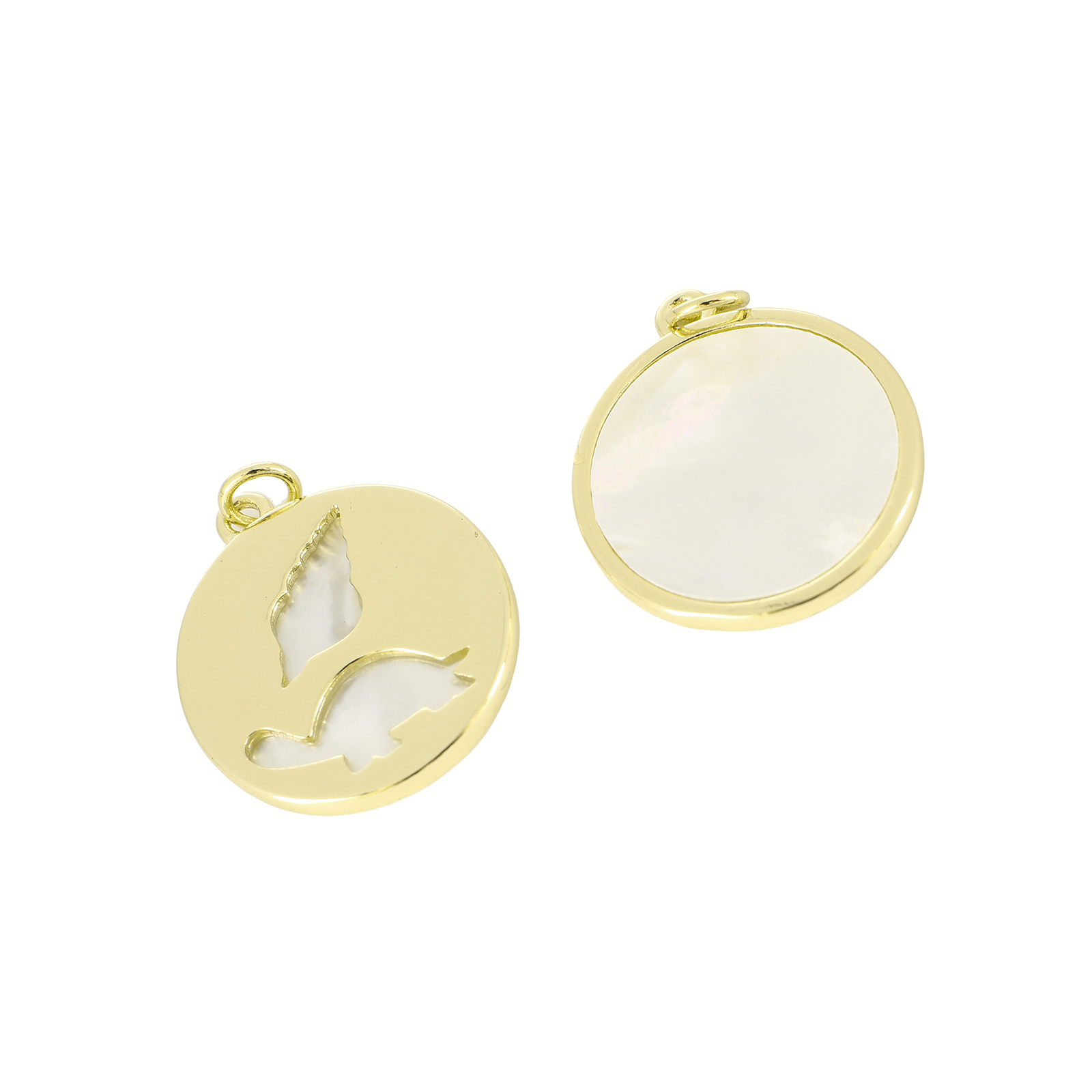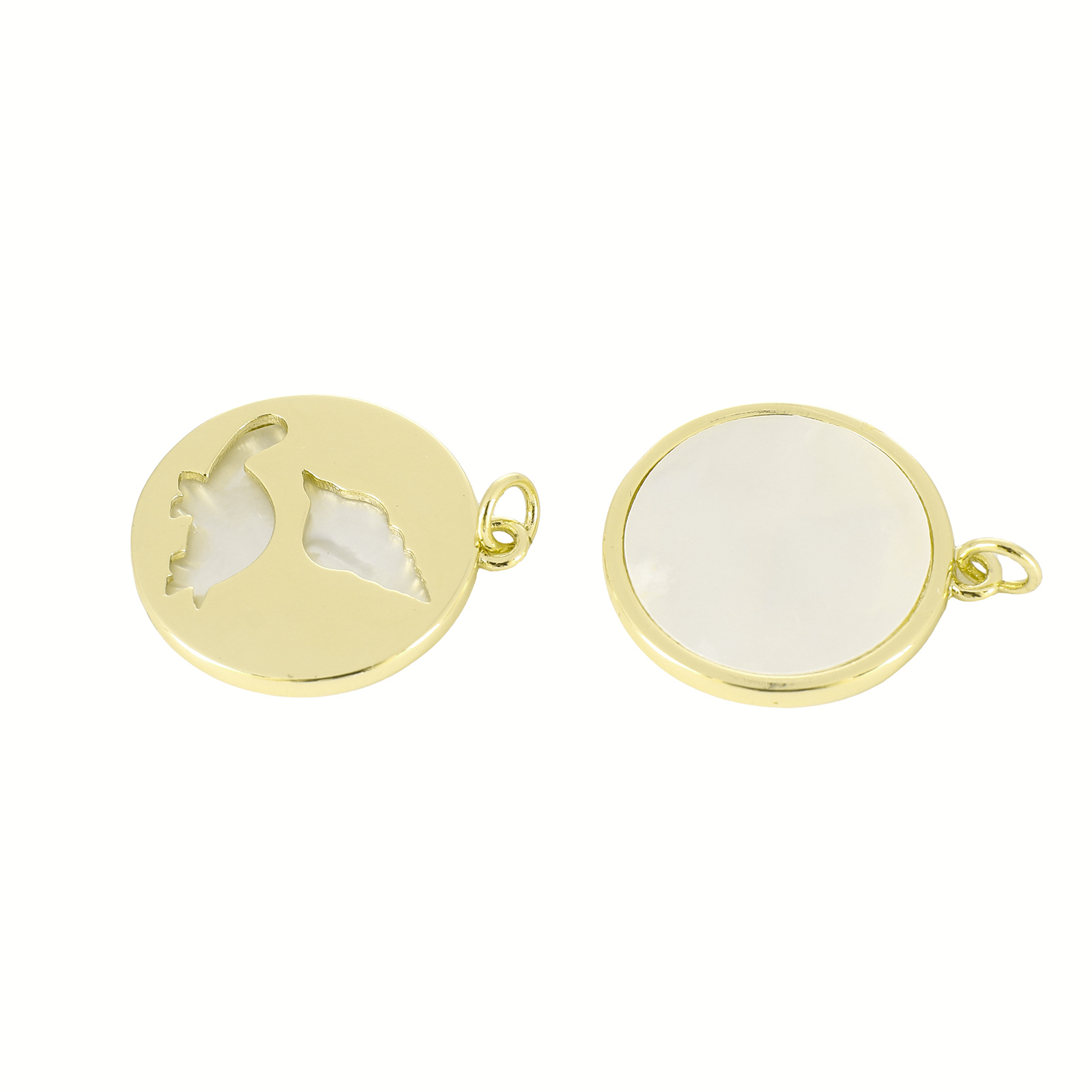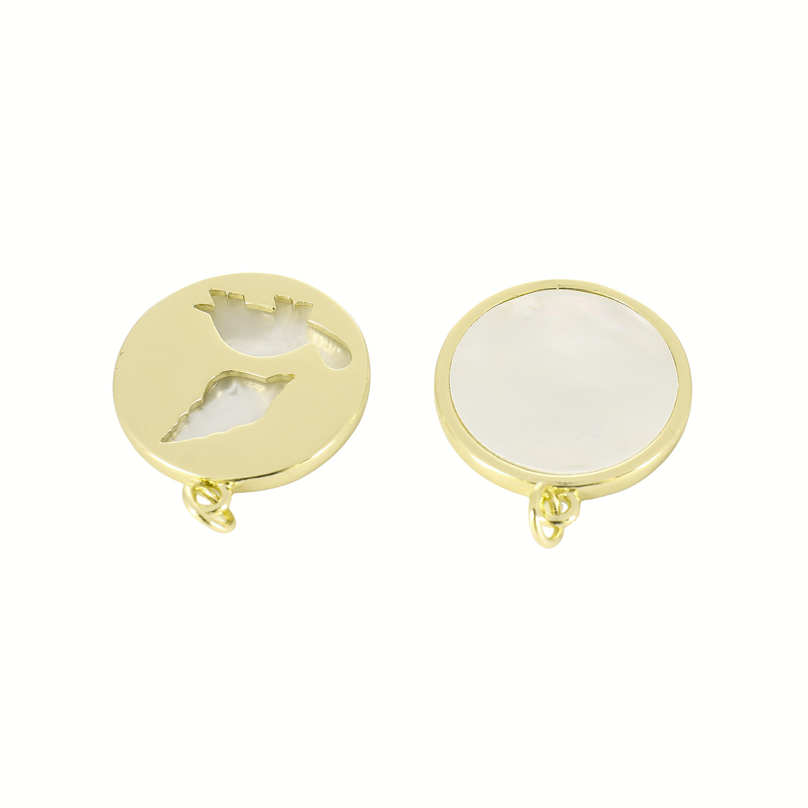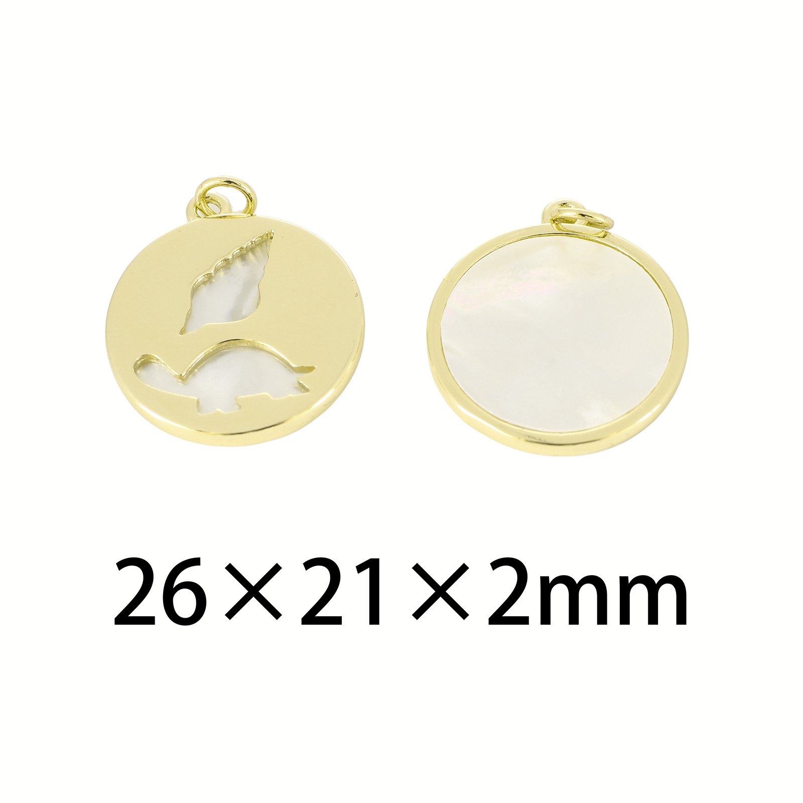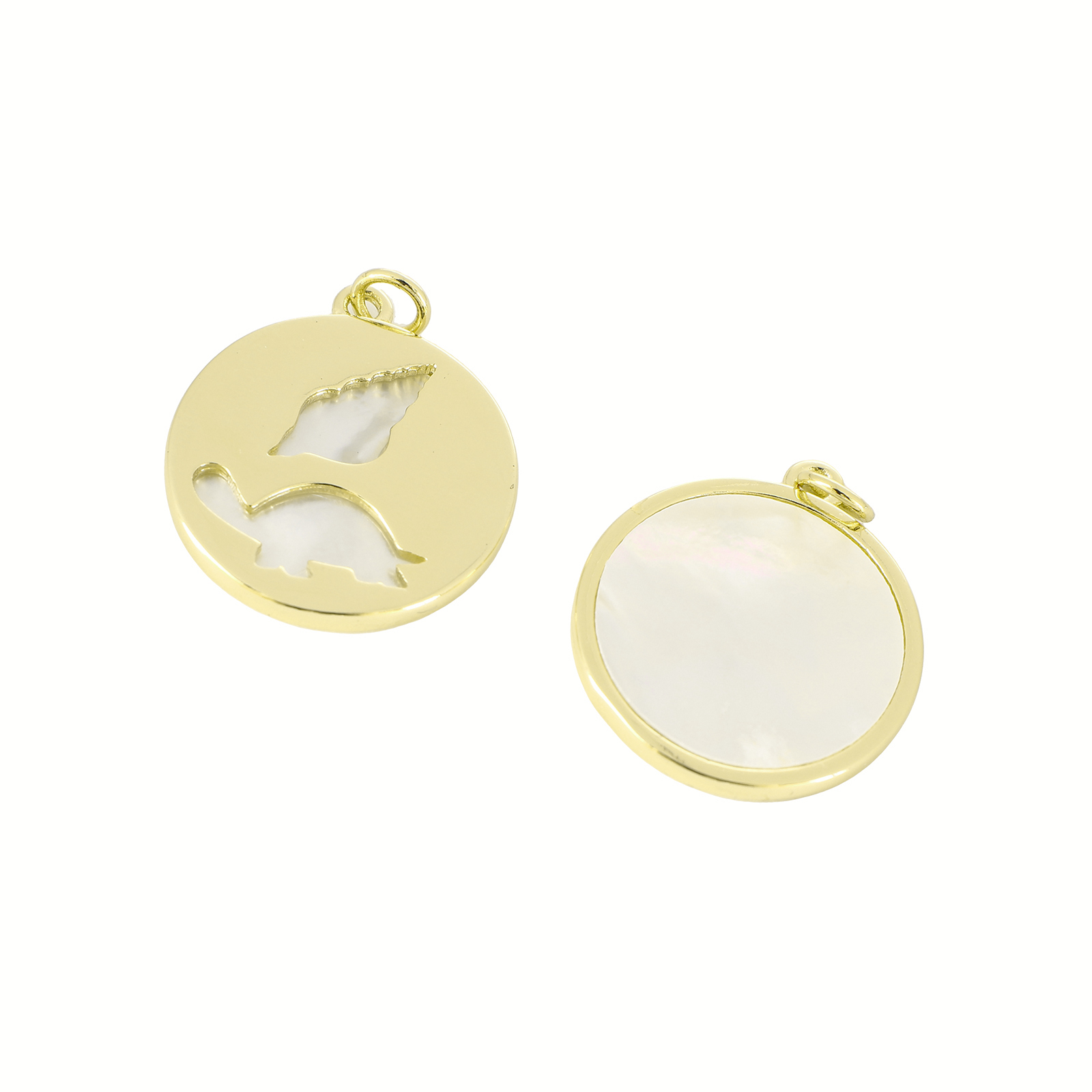 Messing Muschel Anhänger, mit Weiße Muschel, flache Runde, goldfarben plattiert, DIY & hohl, 26x21x2mm, verkauft von PC