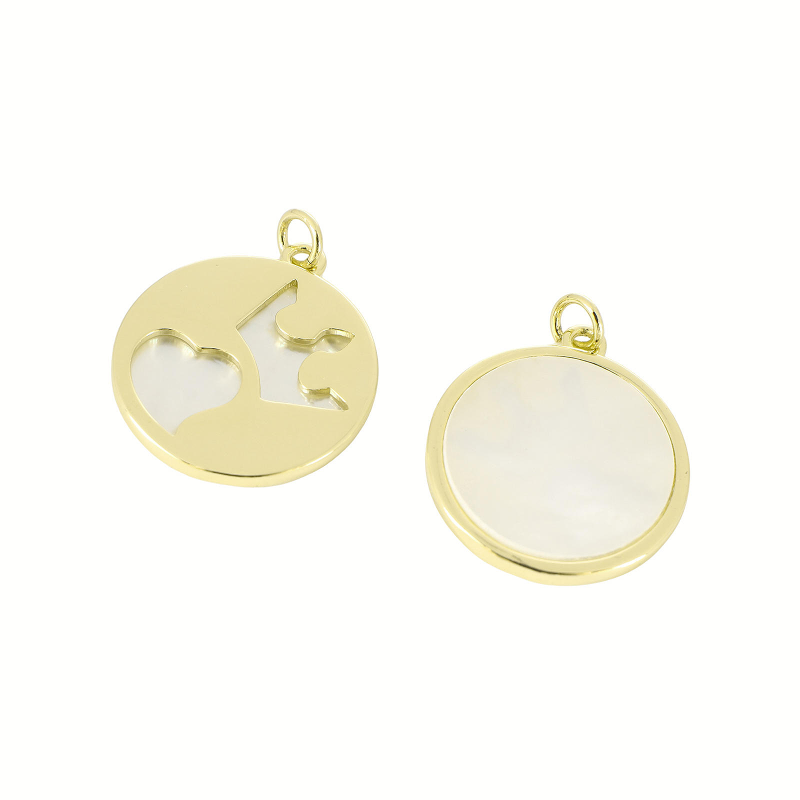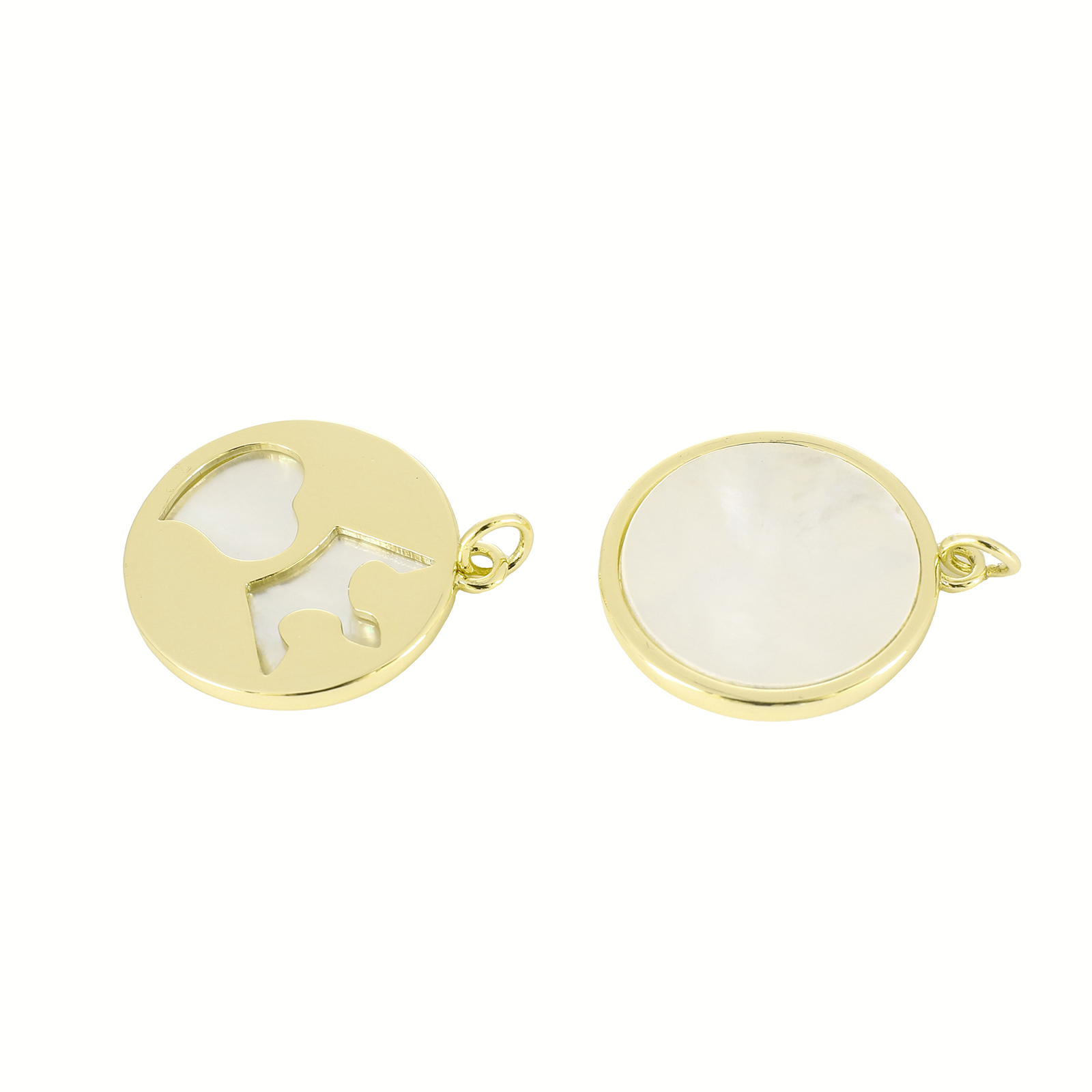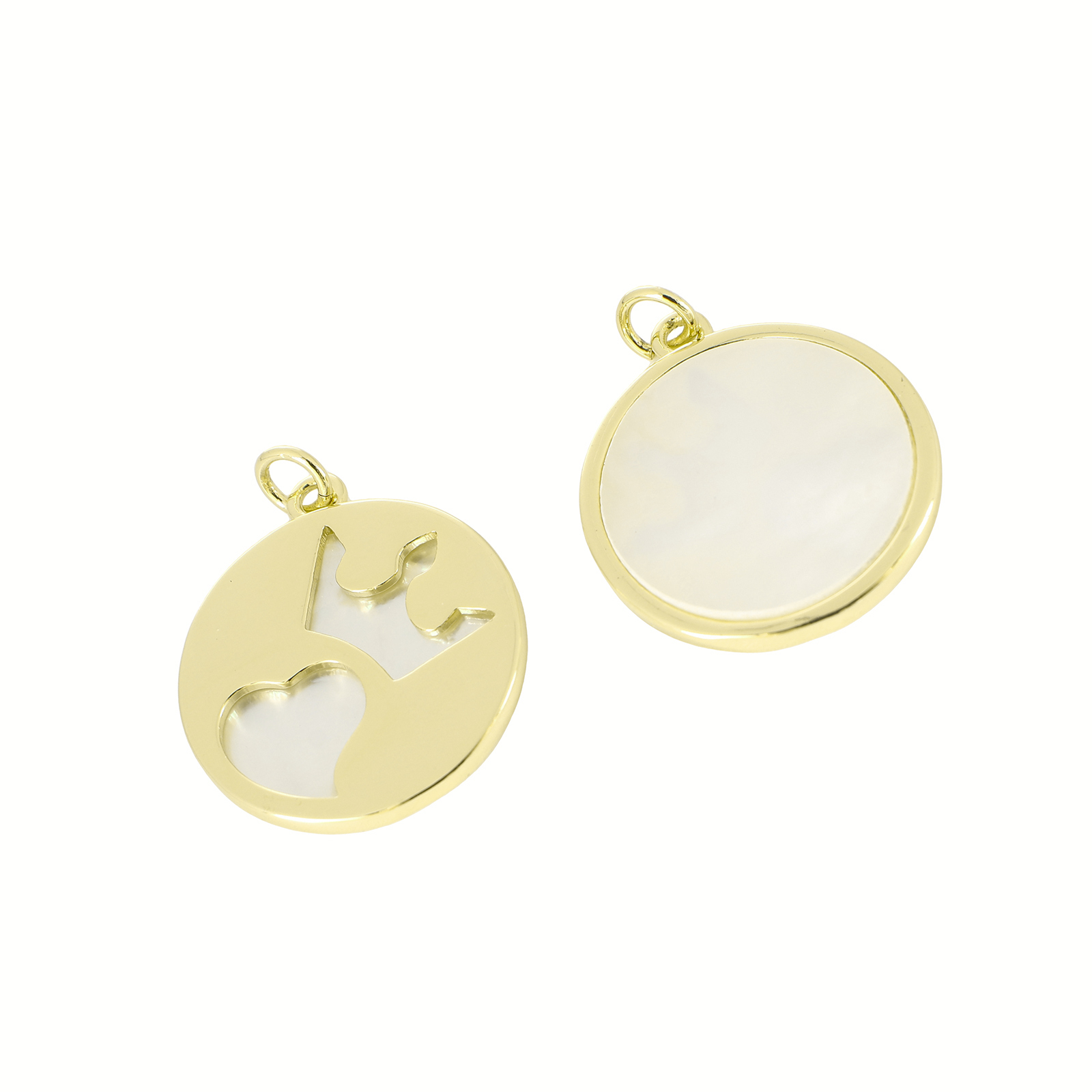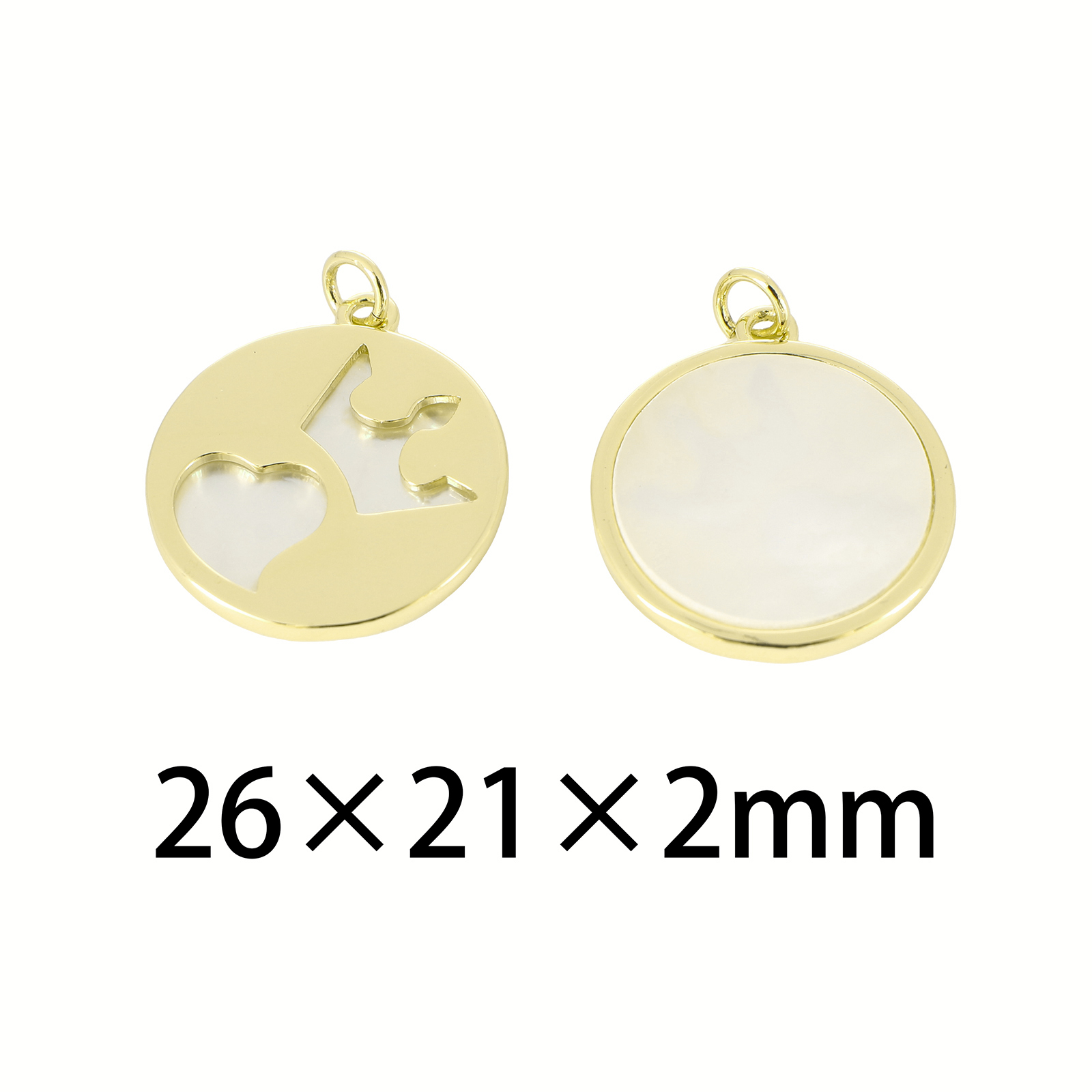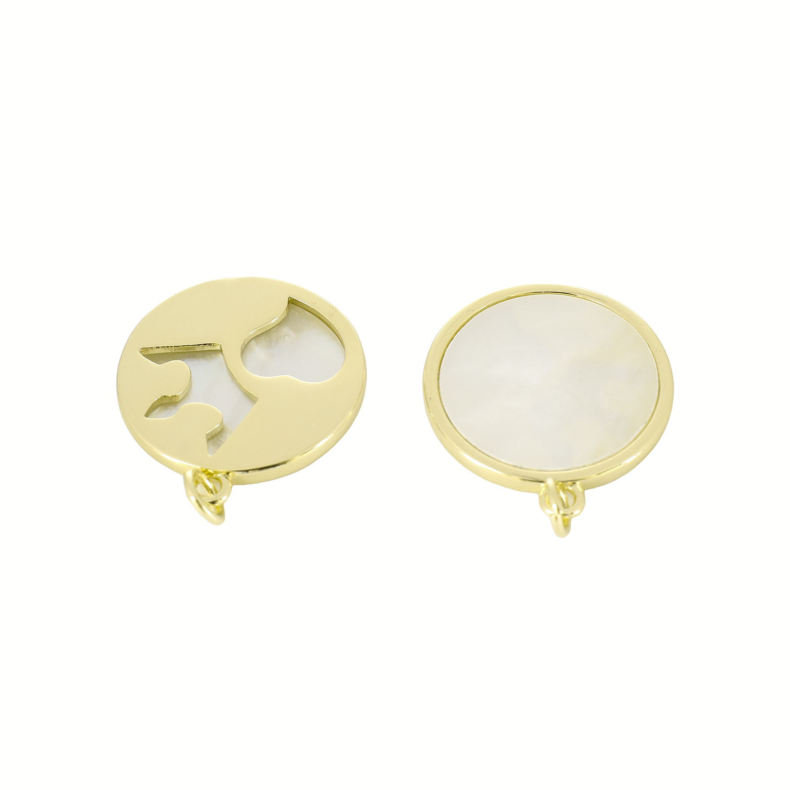 Messing Muschel Anhänger, mit Weiße Muschel, flache Runde, goldfarben plattiert, DIY & hohl, 26x21x2mm, verkauft von PC