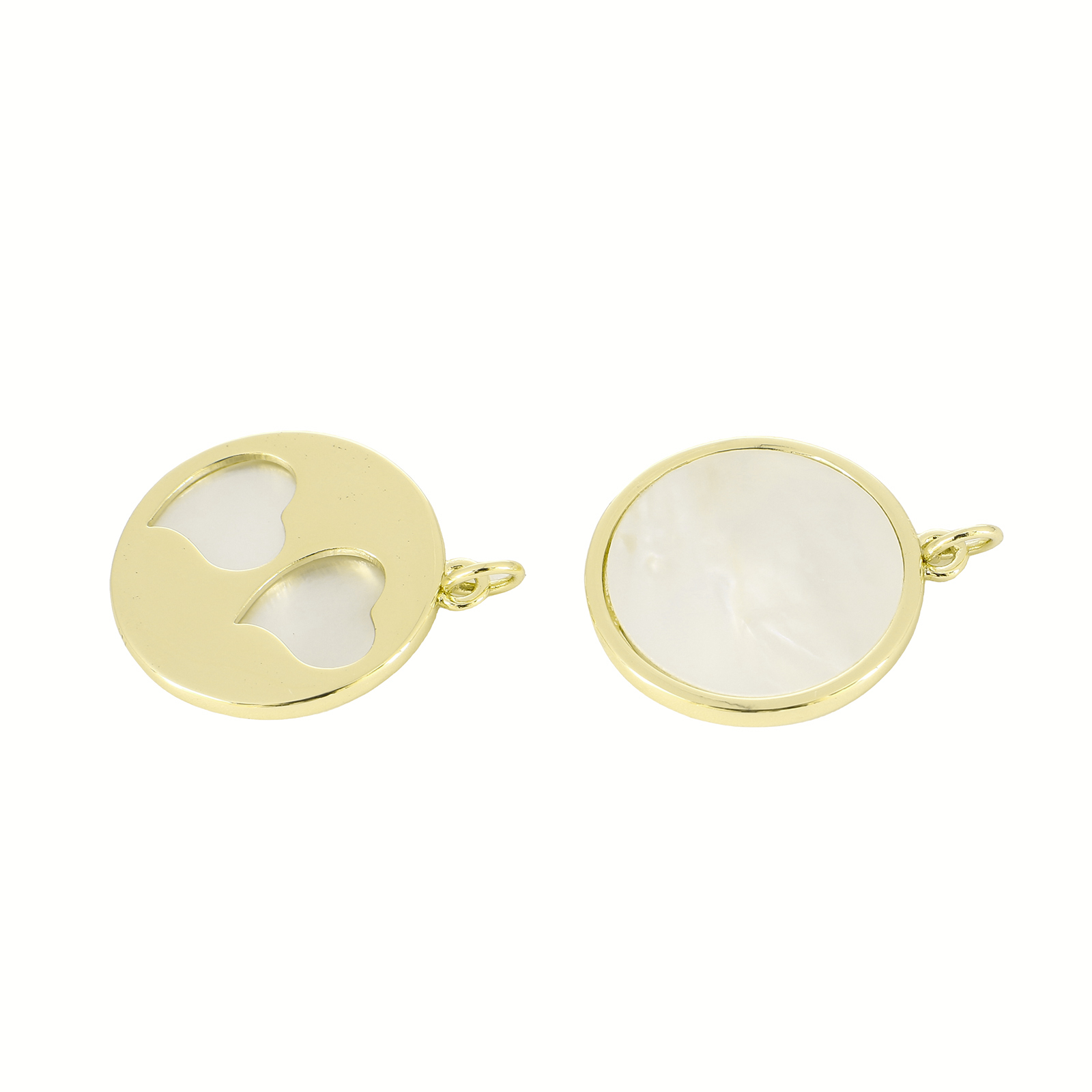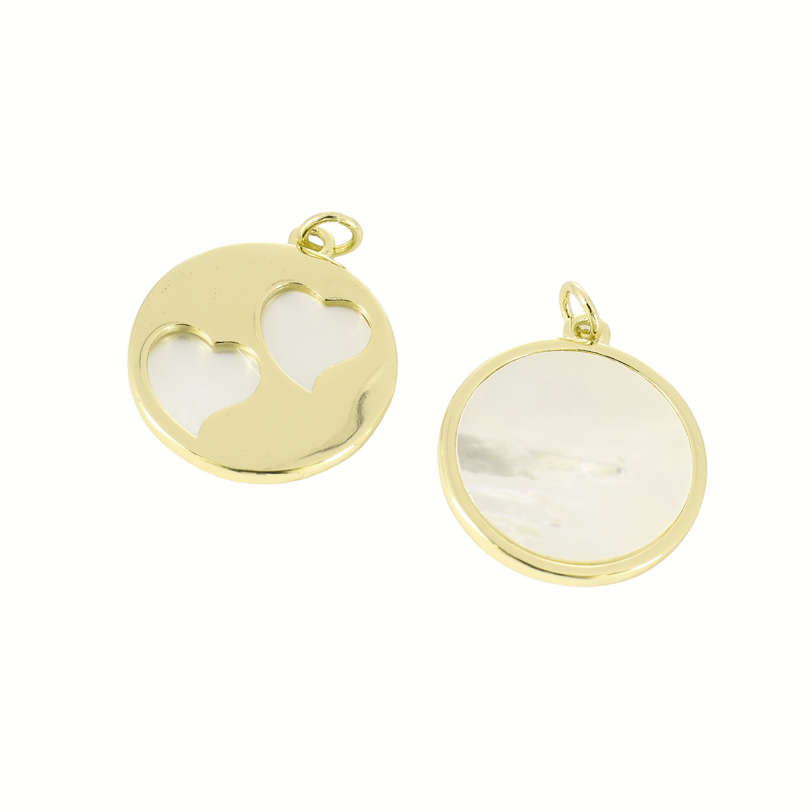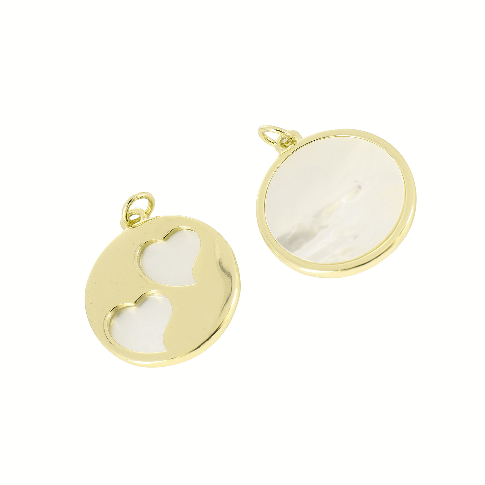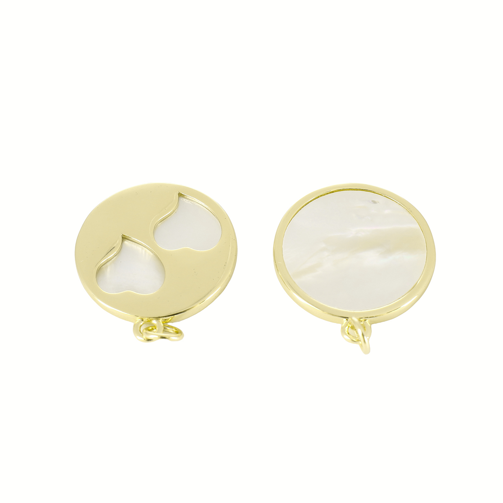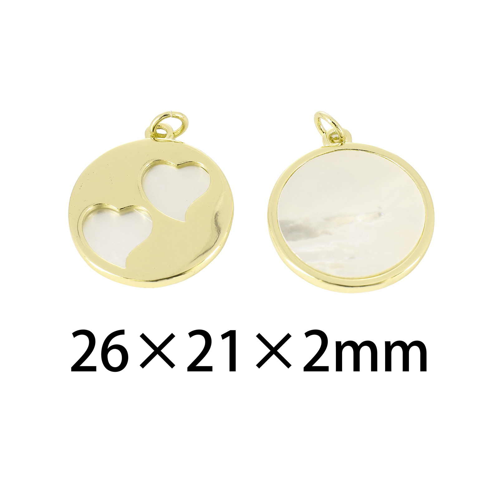 Messing Muschel Anhänger, mit Weiße Muschel, flache Runde, goldfarben plattiert, DIY & hohl, 26x21x2mm, verkauft von PC