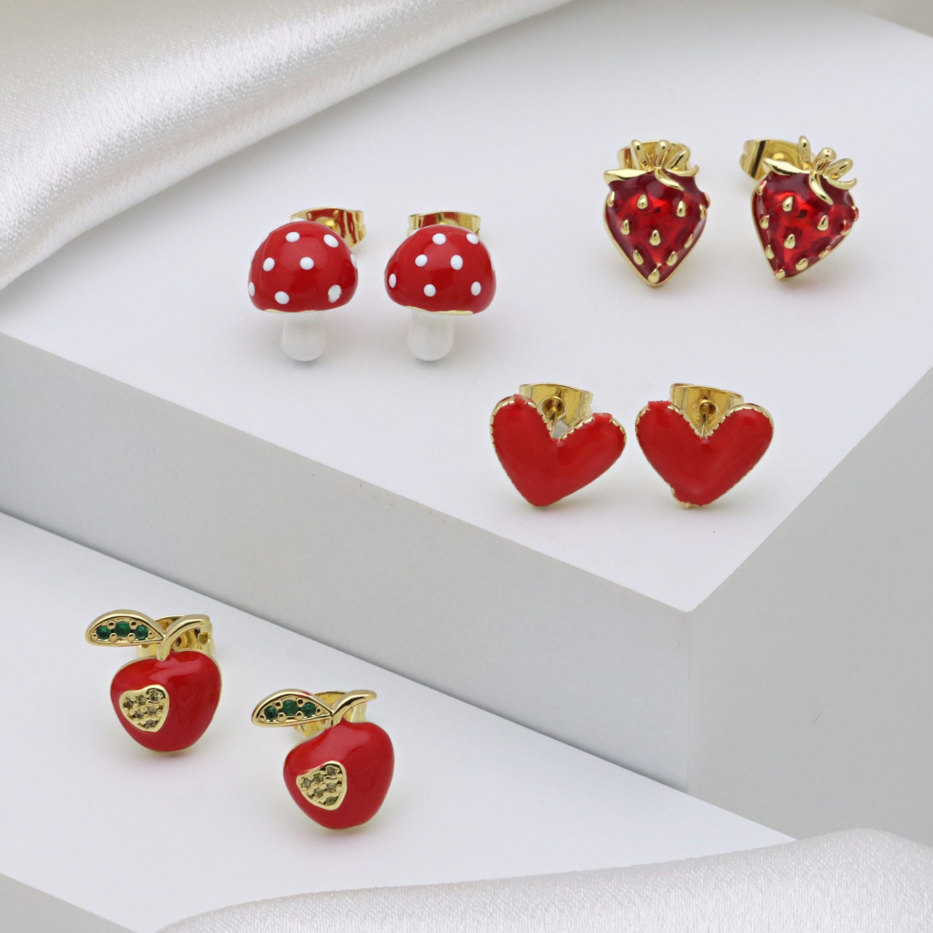 Messing Ohrstecker, goldfarben plattiert, verschiedene Stile für Wahl & Micro pave Zirkonia & für Frau & Emaille, keine, verkauft von Paar