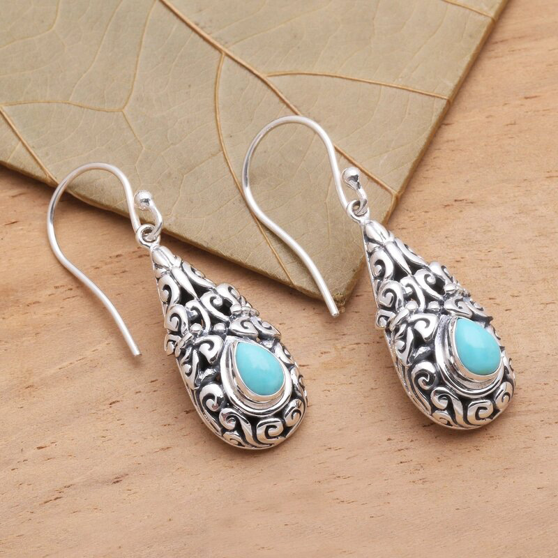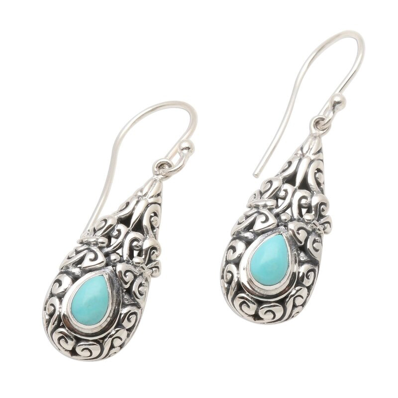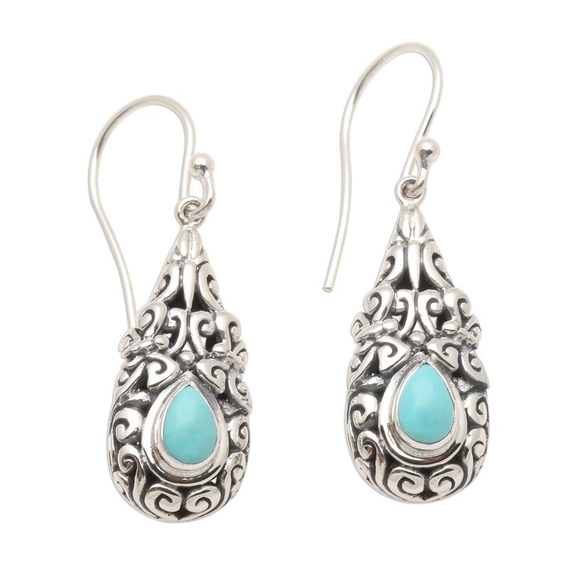 Messing Tropfen Ohrring, mit Synthetische Türkis, plattiert, Modeschmuck & für Frau, verkauft von Paar