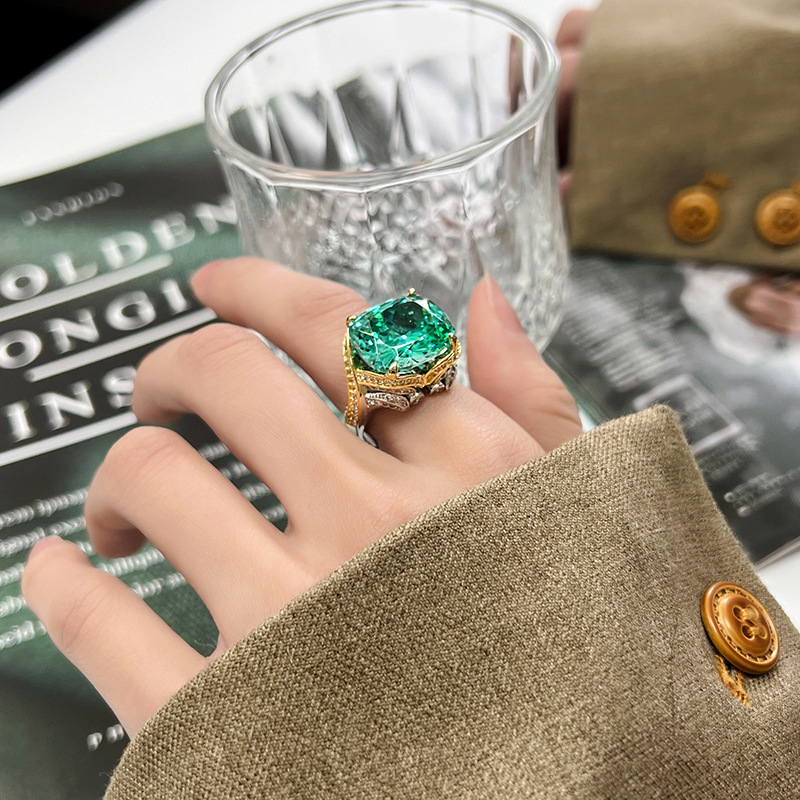 Black gold bird's nest cut green ring