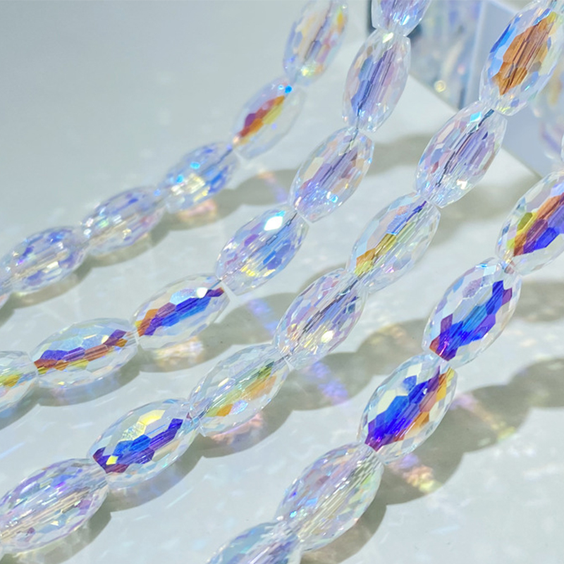 Mode Kristall Perlen, Pferdeauge, bunte Farbe plattiert, facettierte, mehrere Farben vorhanden, 8x22x6mm, Bohrung:ca. 1mm, Länge:ca. 19.5 ZollInch, ca. 100PCs/Strang, verkauft von Strang
