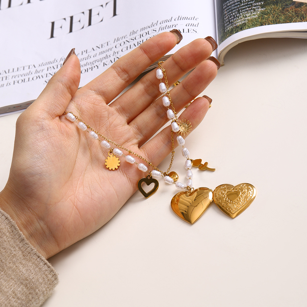 Mode Medaillon Halskette, 304 Edelstahl, mit Kunststoff Perlen, plattiert, kann sich öffnen und in etwas & Doppelschicht & für Frau & mit Strass, goldfarben, verkauft von PC