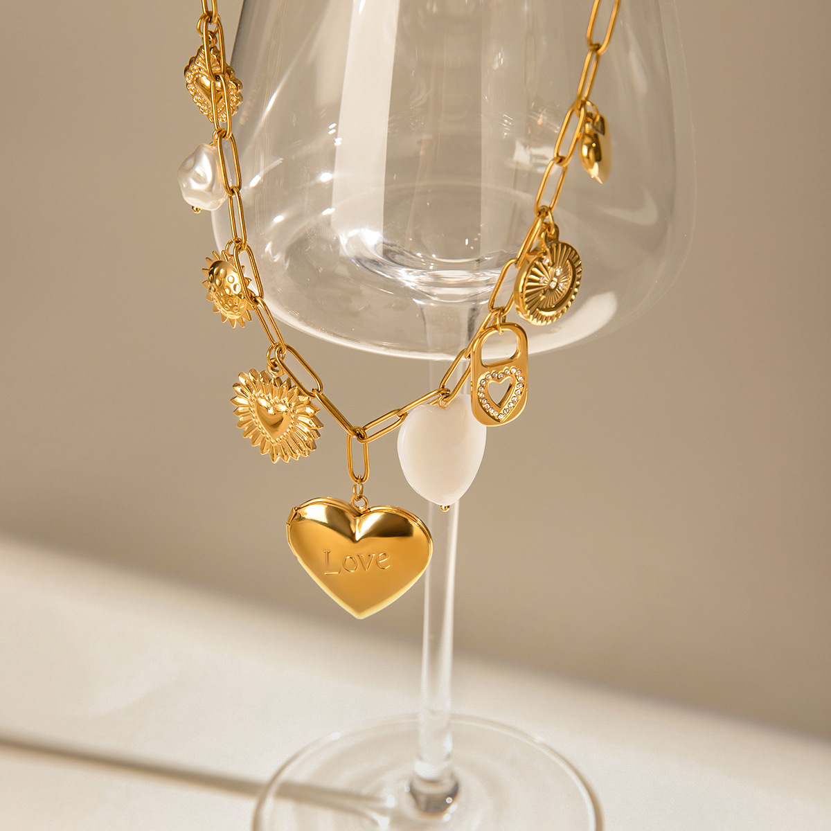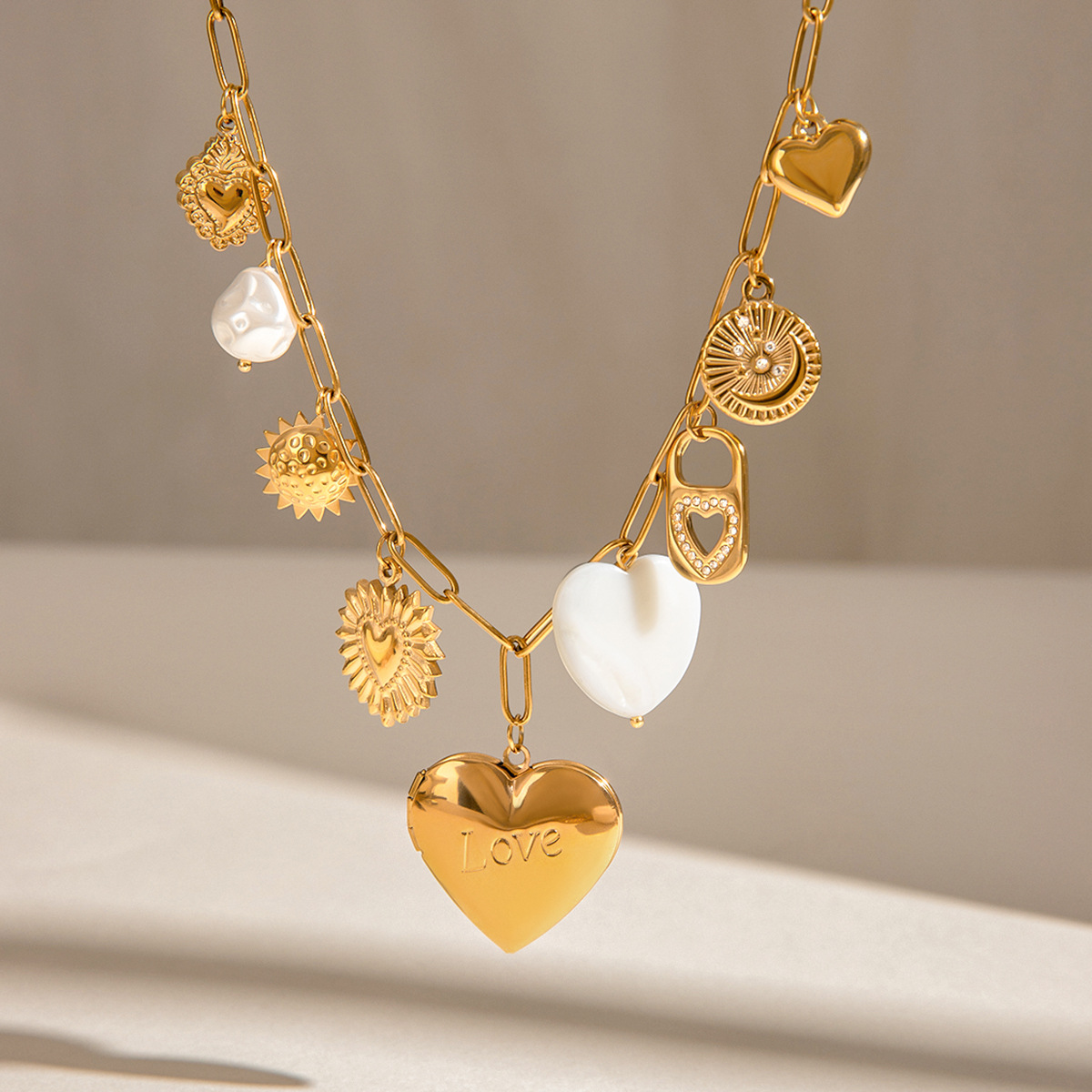Mode Medaillon Halskette, Edelstahl, mit Verlängerungskettchen von 2Inch, Herz, goldfarben plattiert, Oval-Kette & für Frau, 40x43mm, 2mm, Innendurchmesser:ca. 30x26mm, Länge:ca. 17 ZollInch, verkauft von Strang
