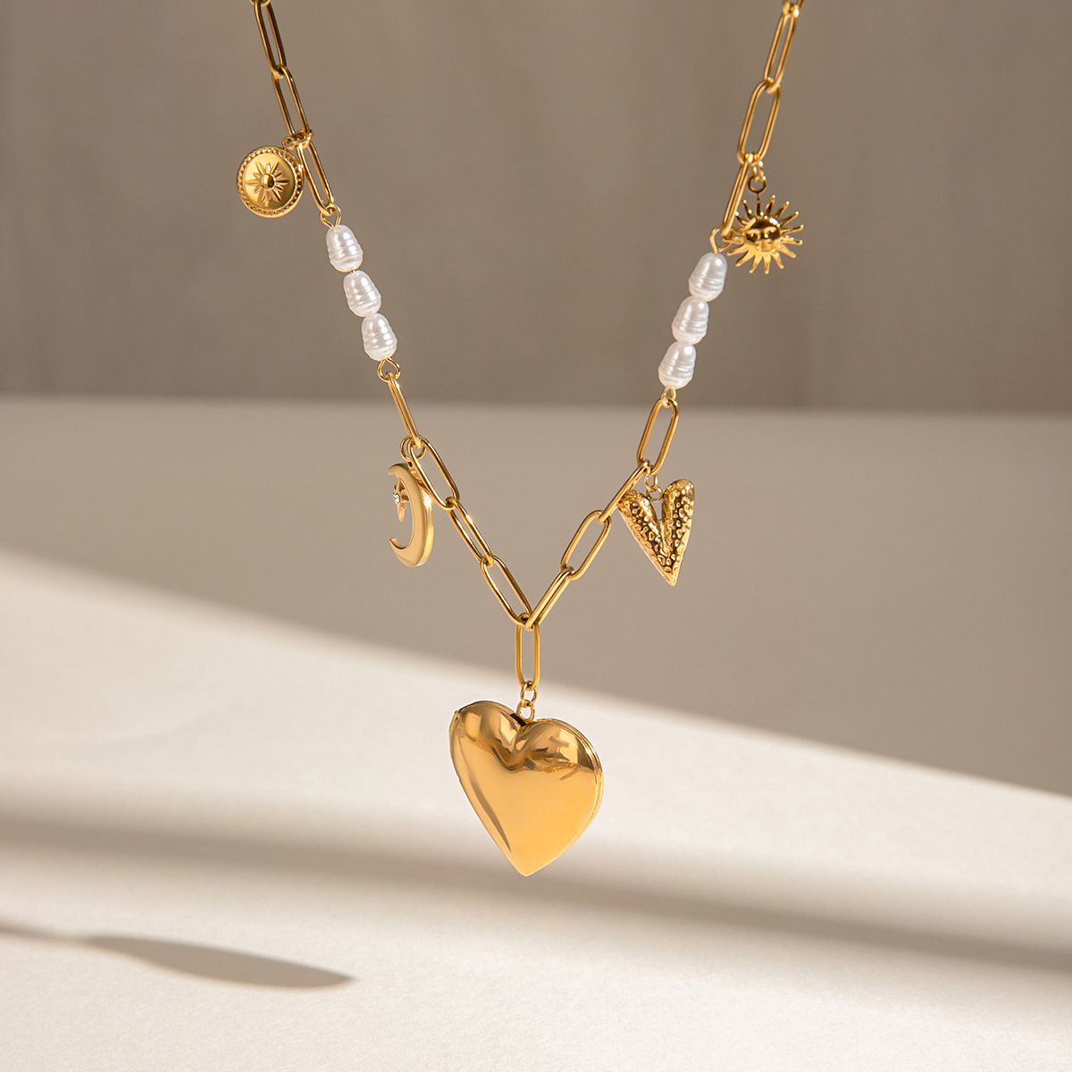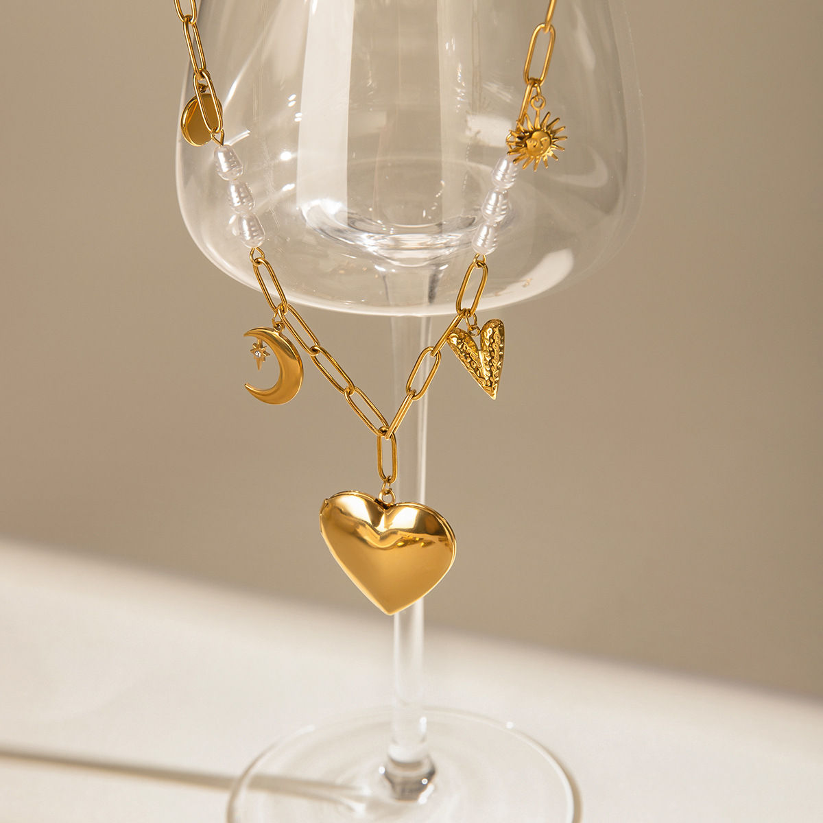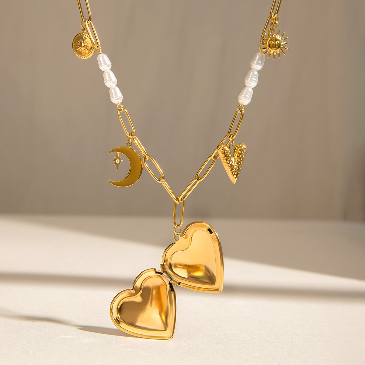 Mode Medaillon Halskette, Edelstahl, mit Verlängerungskettchen von 2Inch, Herz, goldfarben plattiert, Oval-Kette & für Frau, 40x43mm, 2mm, Innendurchmesser:ca. 30x26mm, Länge:ca. 17 ZollInch, verkauft von Strang