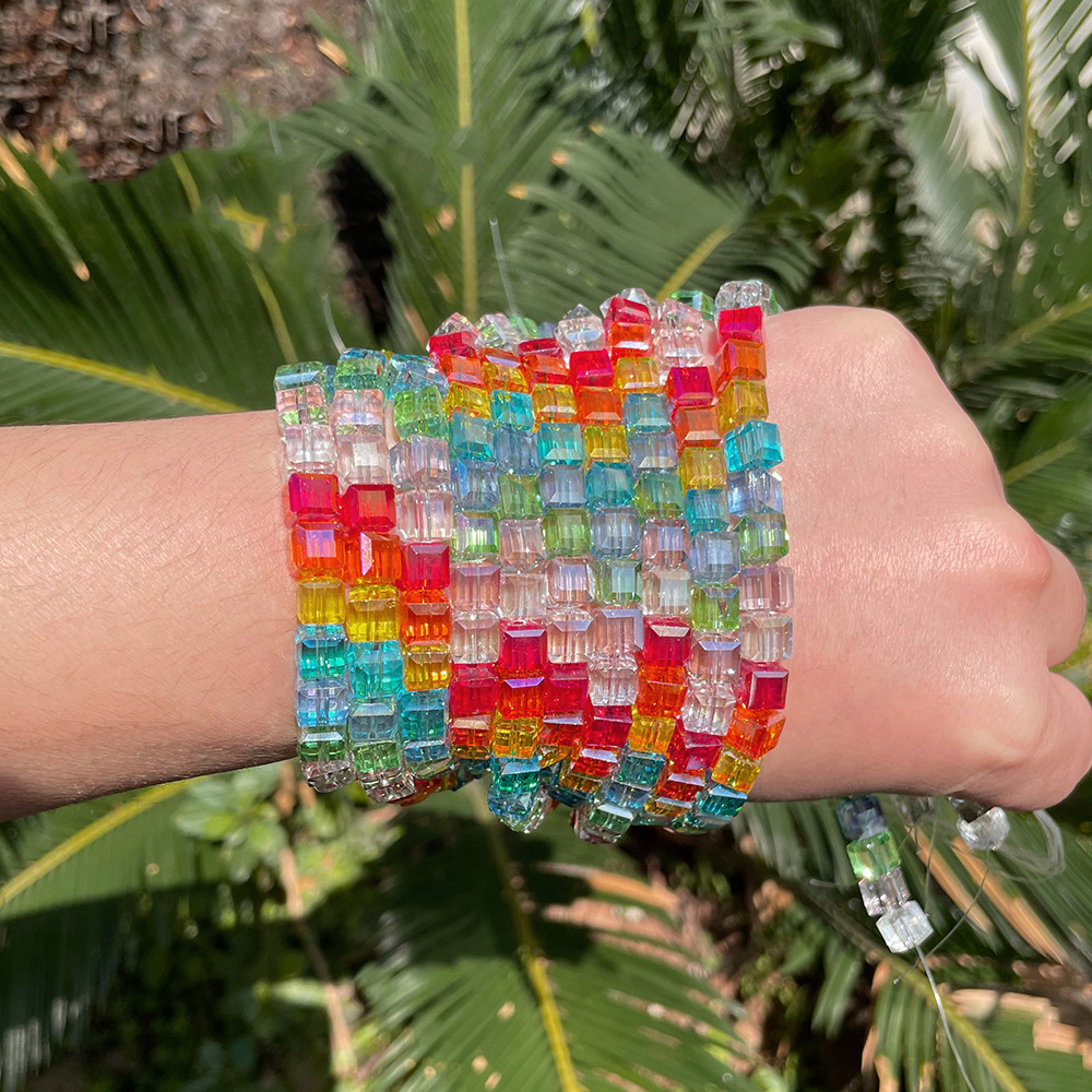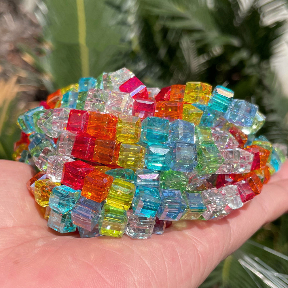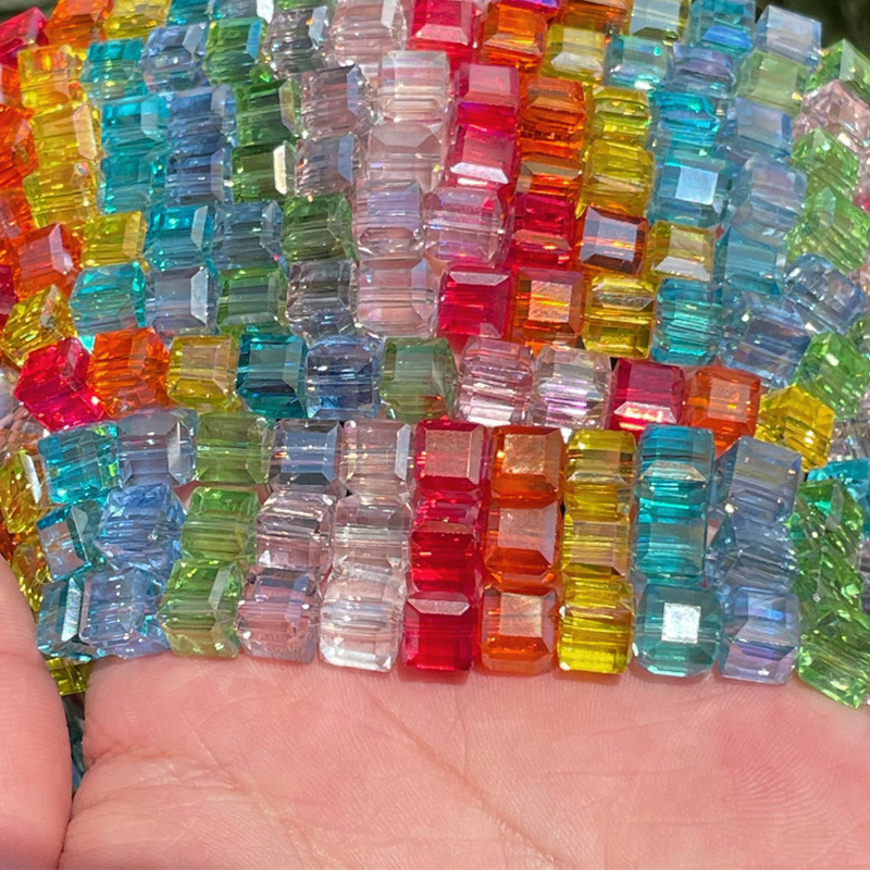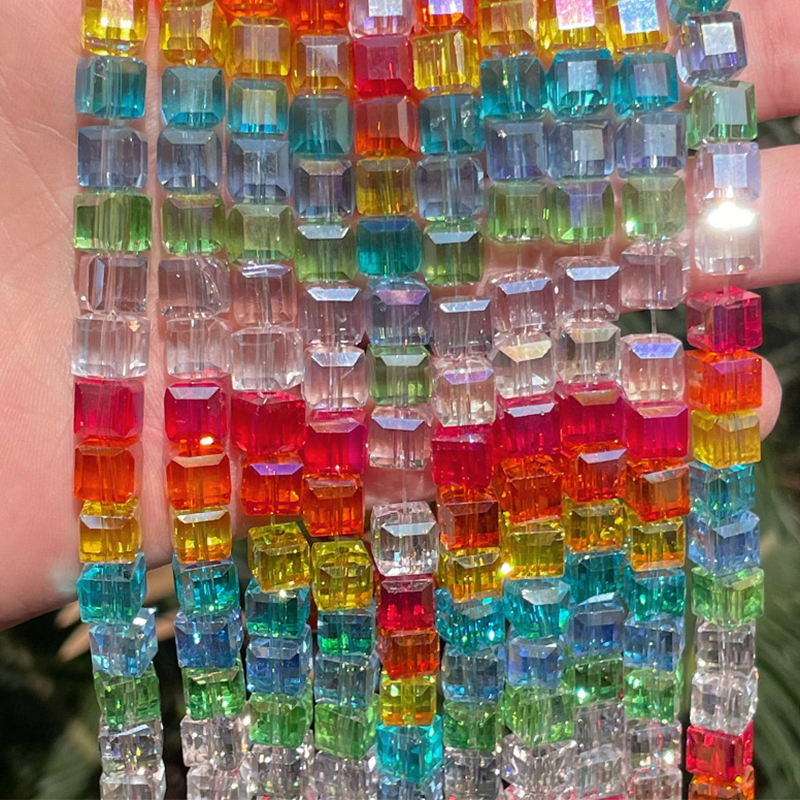 Mode Kristall Perlen, Quadrat, DIY, Mehrfarbige, 6mm, Länge:ca. 38 cm, verkauft von Strang
