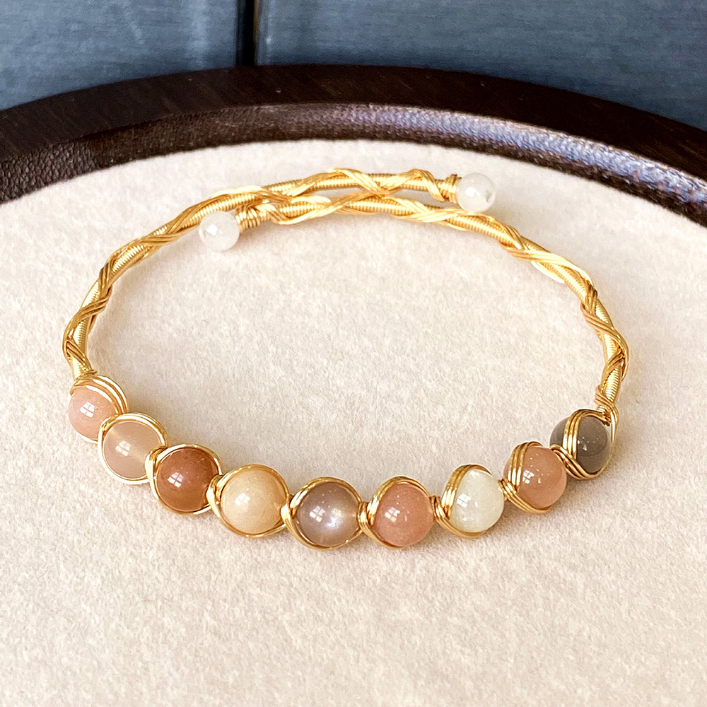 Mondstein-Armband, Messing, mit Mondstein, 14K goldgefüllt, Modeschmuck & für Frau, Inner diameter :55mm, verkauft von PC