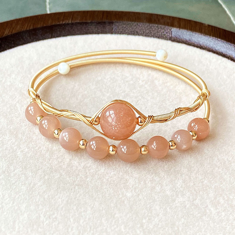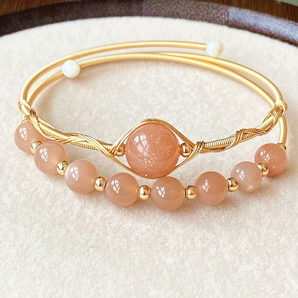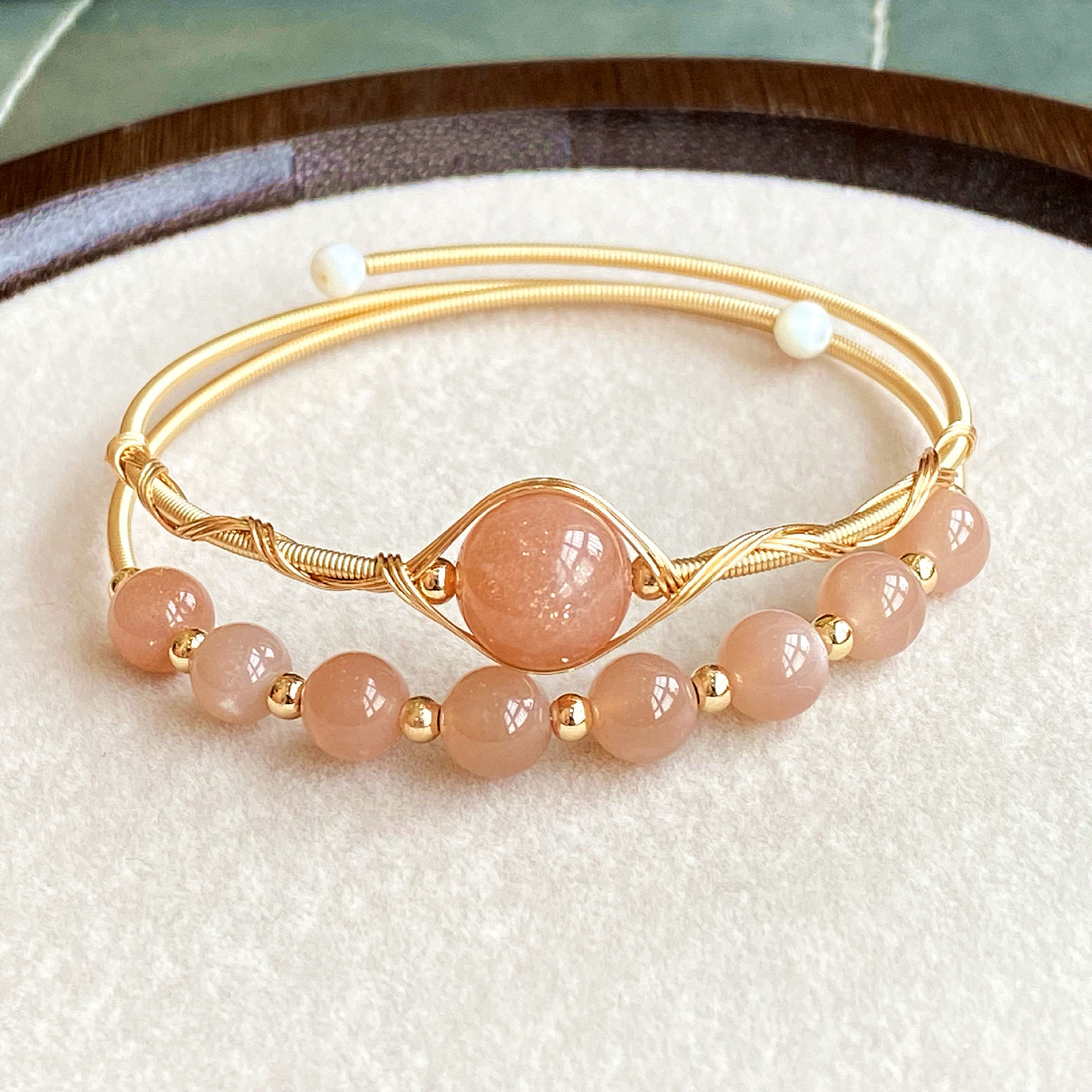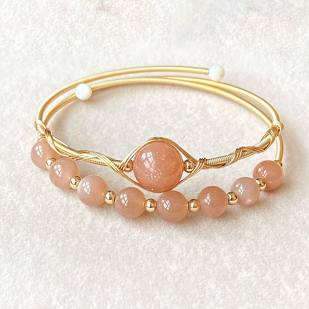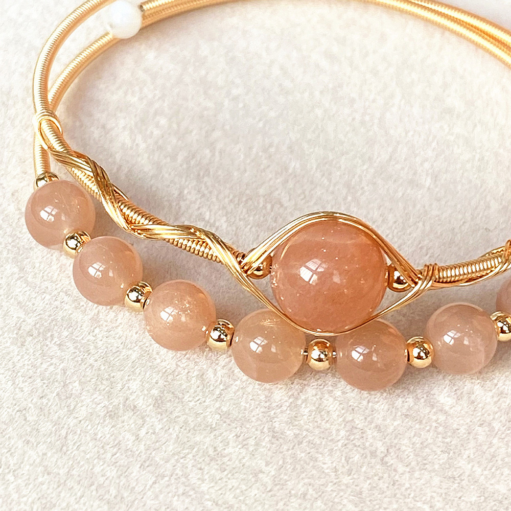 Mondstein-Armband, Messing, mit Mondstein, 14K goldgefüllt, Doppelschicht & Modeschmuck & für Frau, Inner diameter :55mm, verkauft von PC