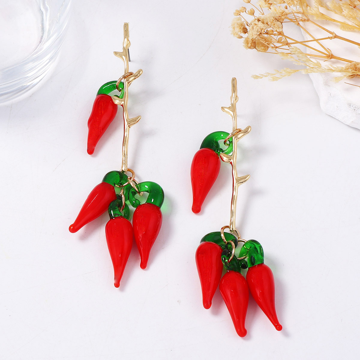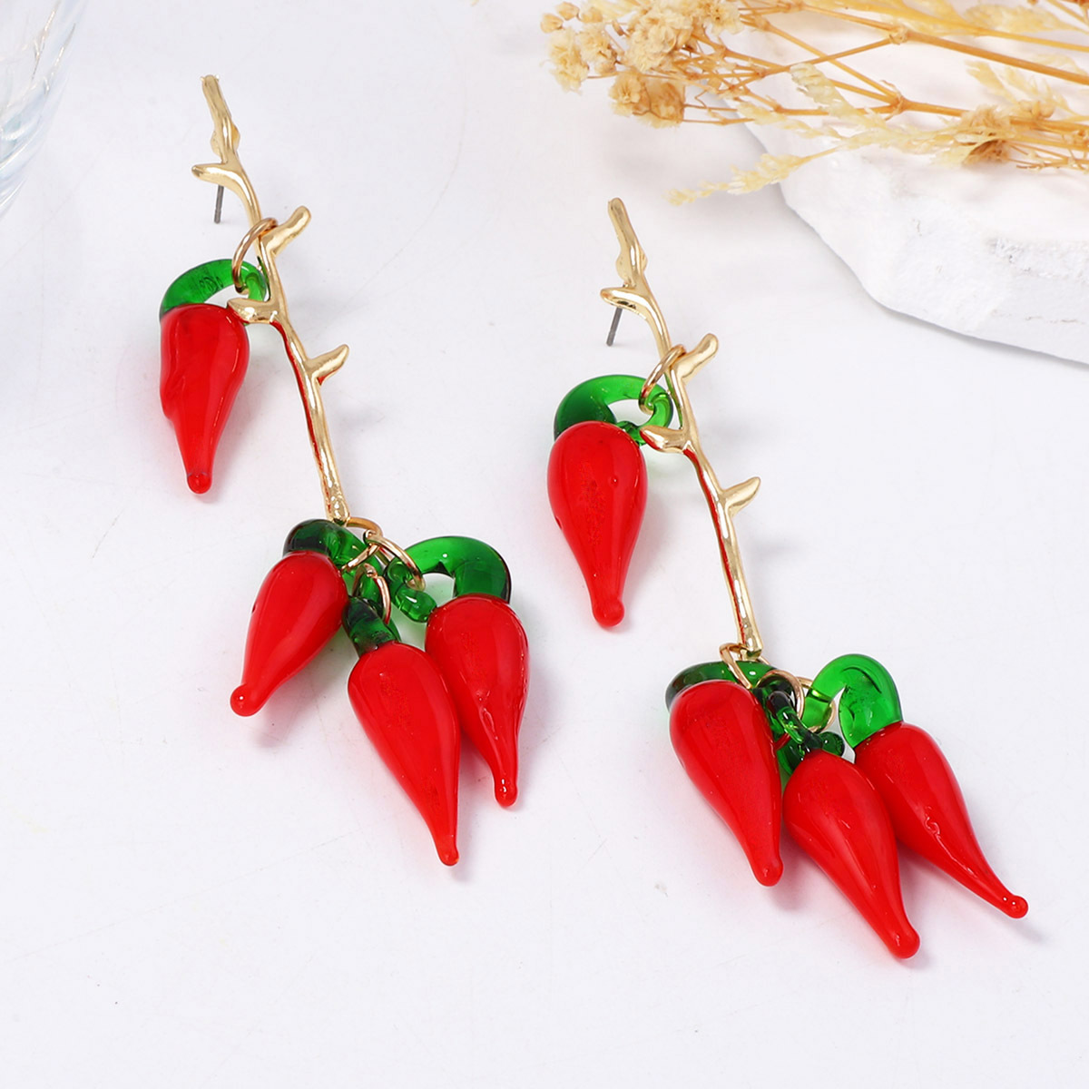 Murano Tropfen Ohrringe, Lampwork, Cayennepfeffer, plattiert, Modeschmuck & für Frau & mit Strass, grün, 23x94mm, verkauft von Paar