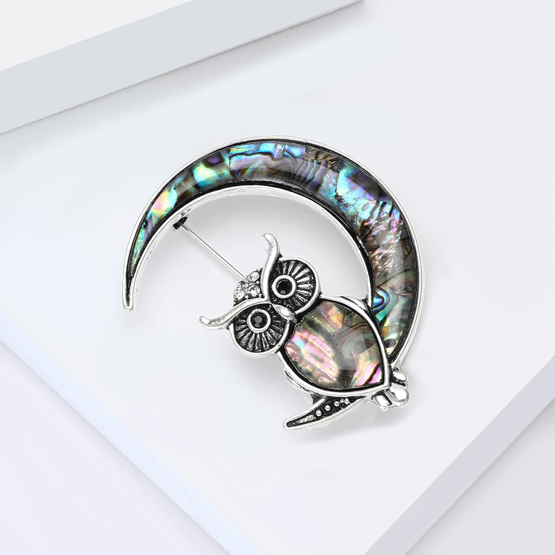Muschel Brosche, mit Zinklegierung, Eule, Modeschmuck & mit Strass, gemischte Farben, verkauft von PC