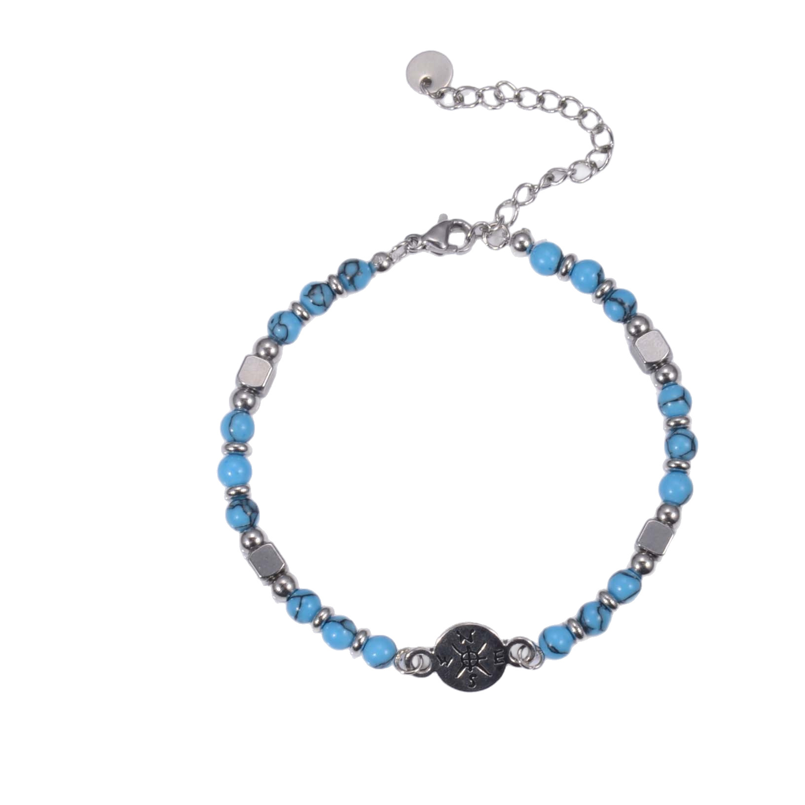 Natürliche Türkis Armband, mit 304 Edelstahl, Kompass, handgemacht, unisex & einstellbar, Länge:ca. 6.7 ZollInch, verkauft von PC