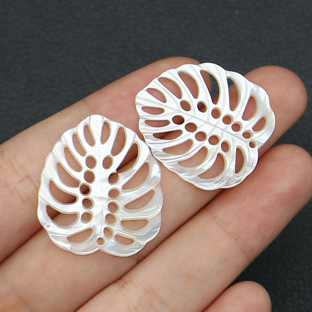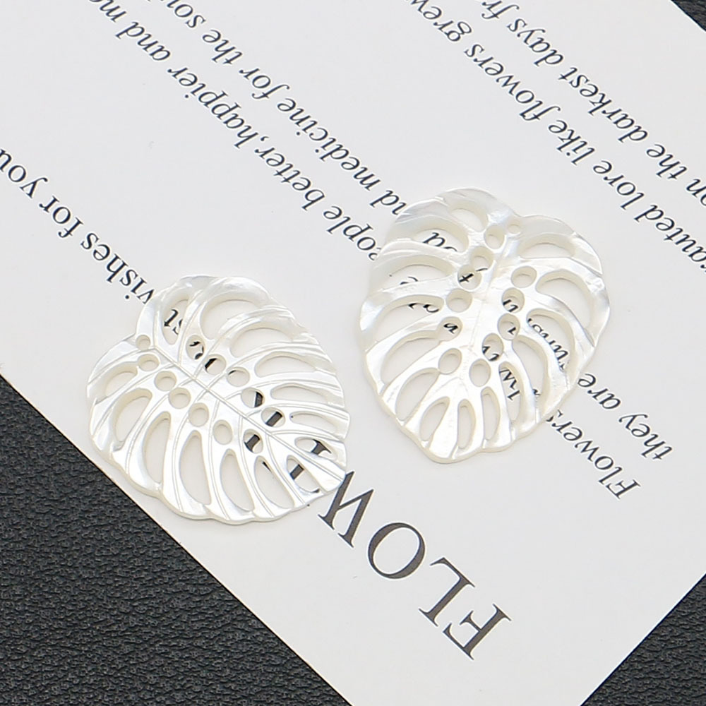 Natürlichen Muschel -Anhänger, Weiße Lippenschale, Ginkgo-Blatt, DIY & hohl, weiß, 22x25mm, verkauft von PC