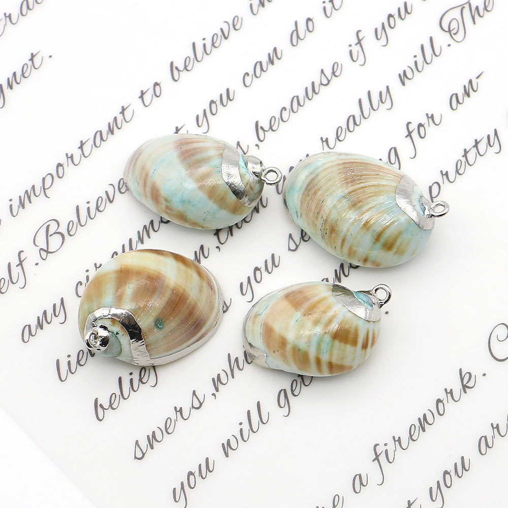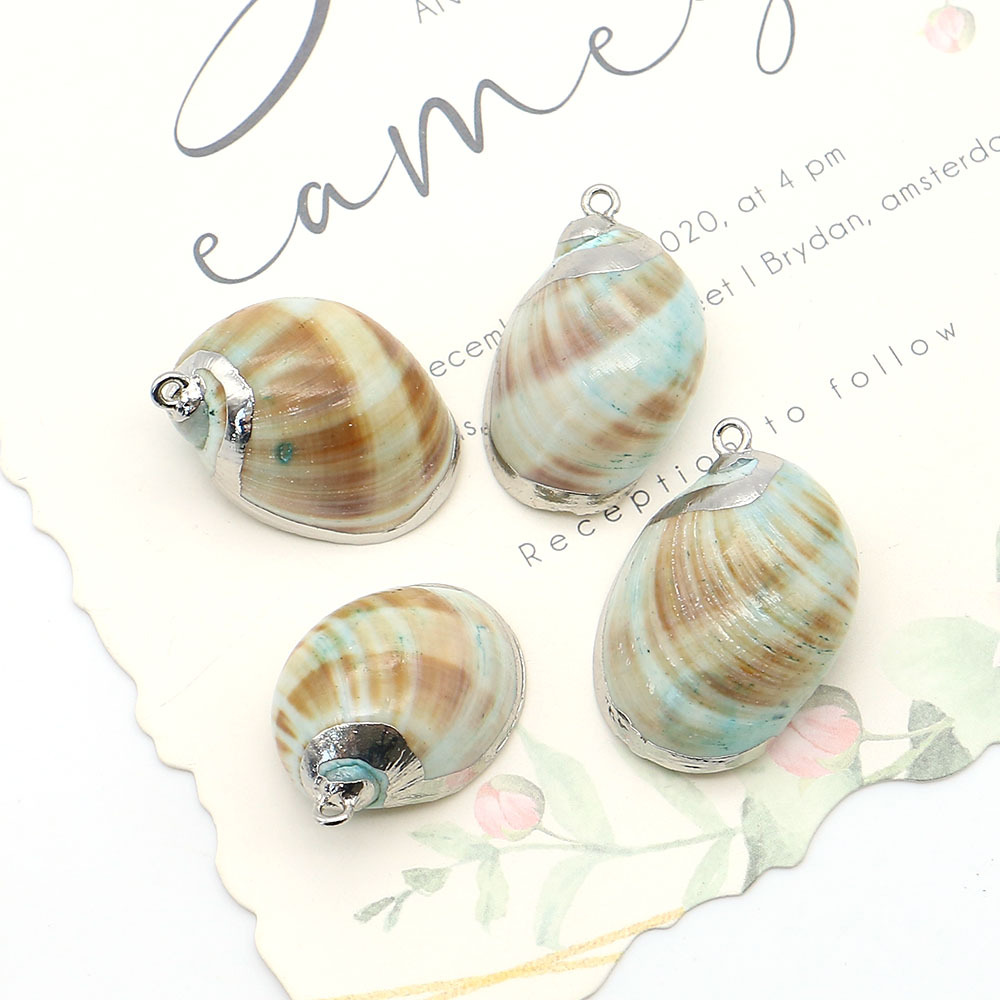 Natürlichen Muschel -Anhänger, mit Eisen, Strandschnecke, silberfarben plattiert, DIY, gemischte Farben, 21x28mm-23x33mm, verkauft von PC