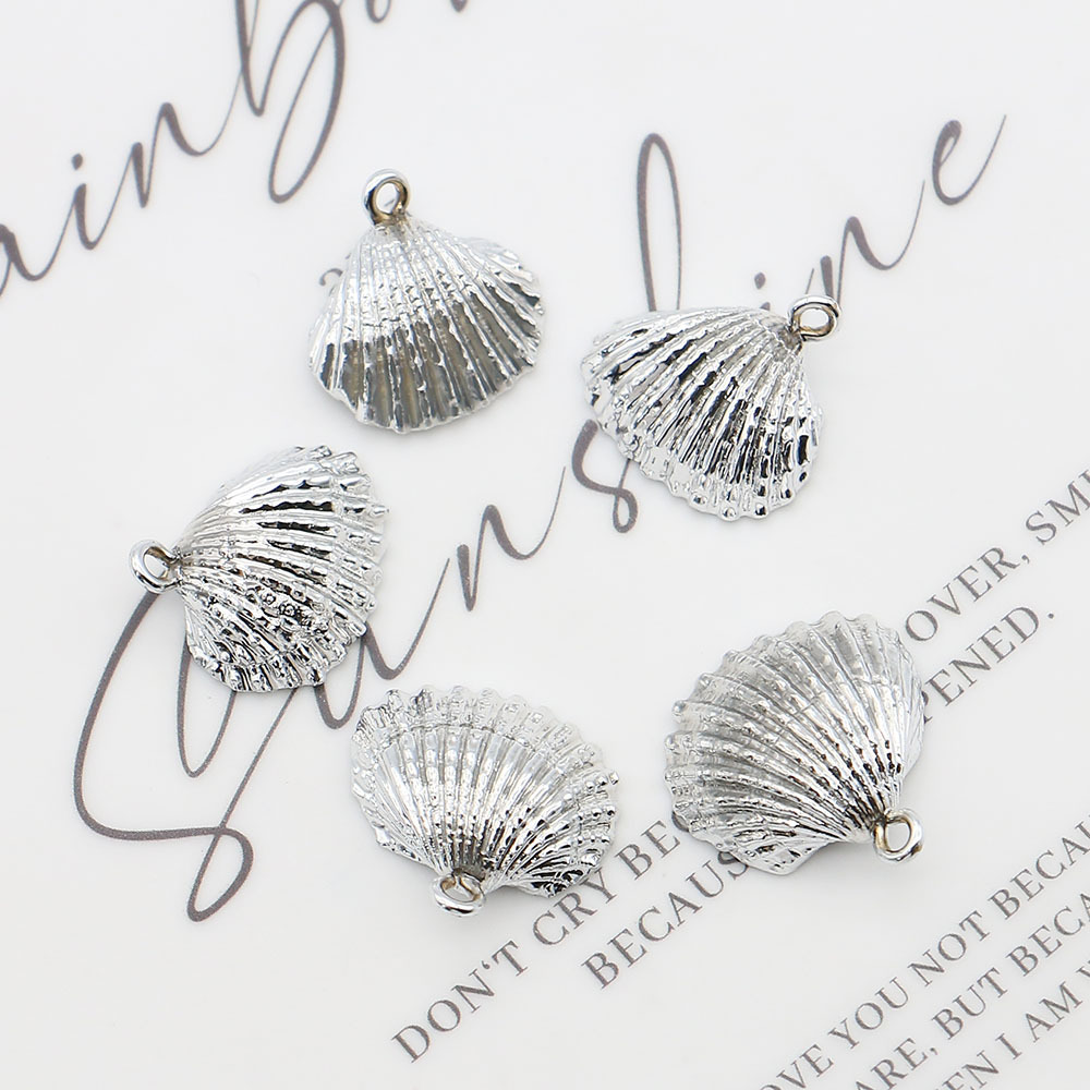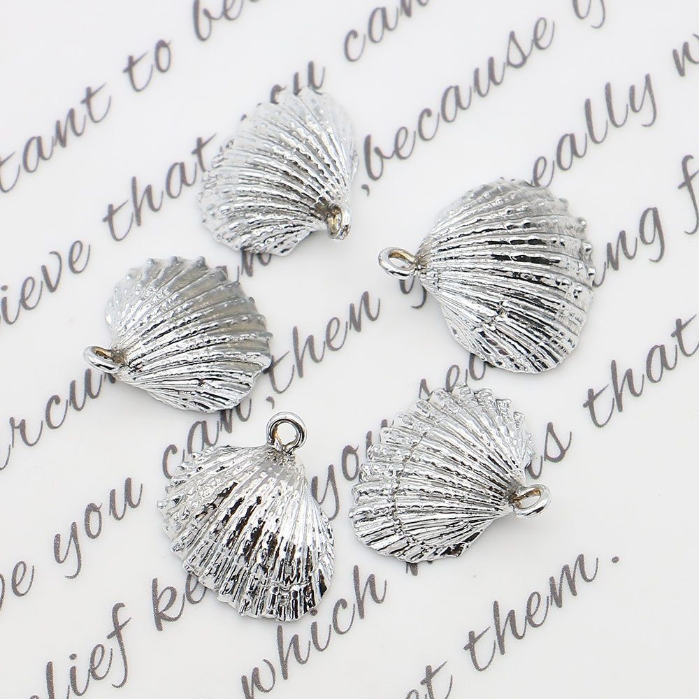 Natürlichen Muschel -Anhänger, mit Eisen, Schale, silberfarben plattiert, DIY, gemischte Farben, 17x17mm-19x20mm, verkauft von PC