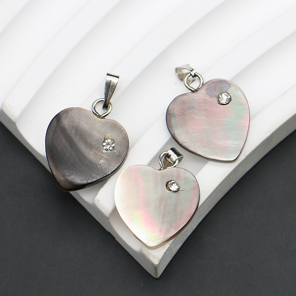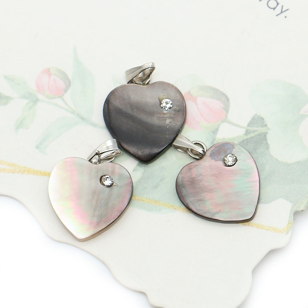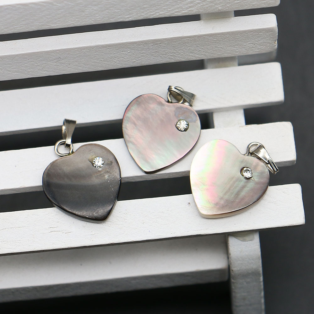 Natürlichen Muschel -Anhänger, Black+Lip+Shell, mit Wachsschnur & Eisen, Herz, DIY & Micro pave Zirkonia, gemischte Farben, 15x18mm, Länge:45 cm, verkauft von PC