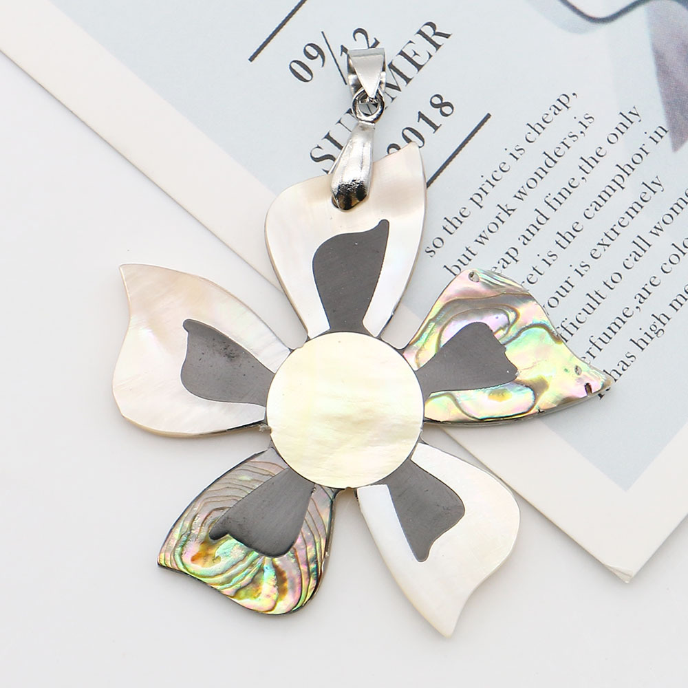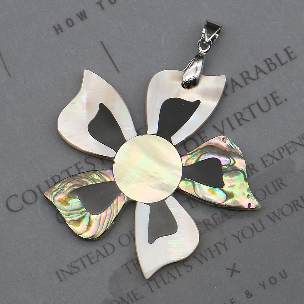 Natürlichen Muschel -Anhänger, Seemuschel, mit Messing, plattiert, DIY, gemischte Farben, 51x55mm, verkauft von PC