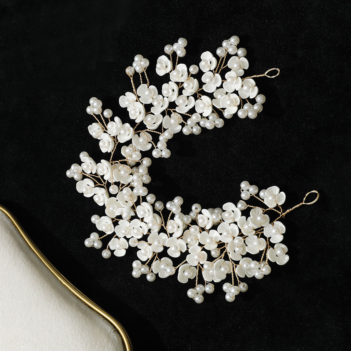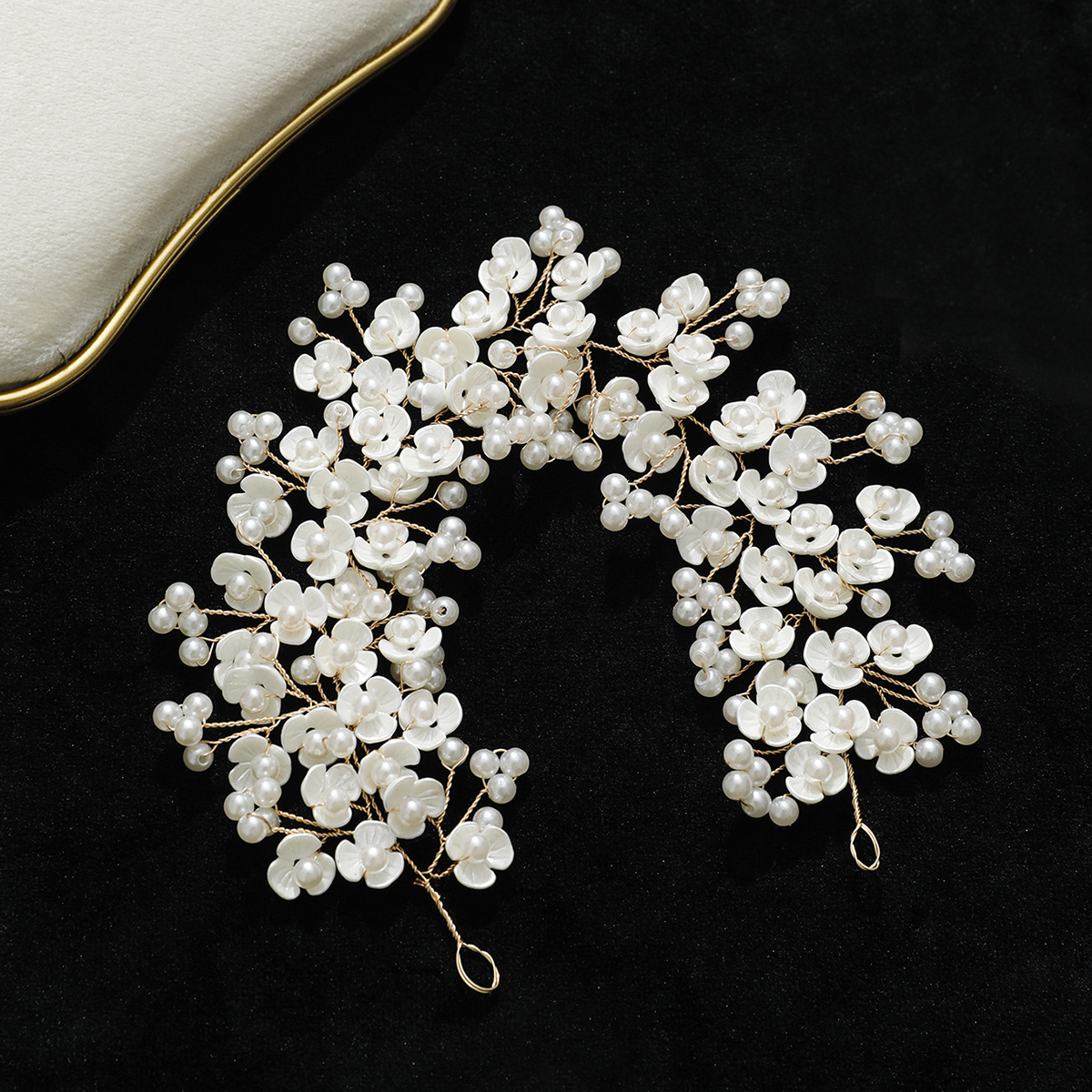 Brautkranz, Kunststoff Perlen, mit Messingdraht, handgemacht, Modeschmuck & für Frau, goldfarben, 280x60mm, verkauft von PC