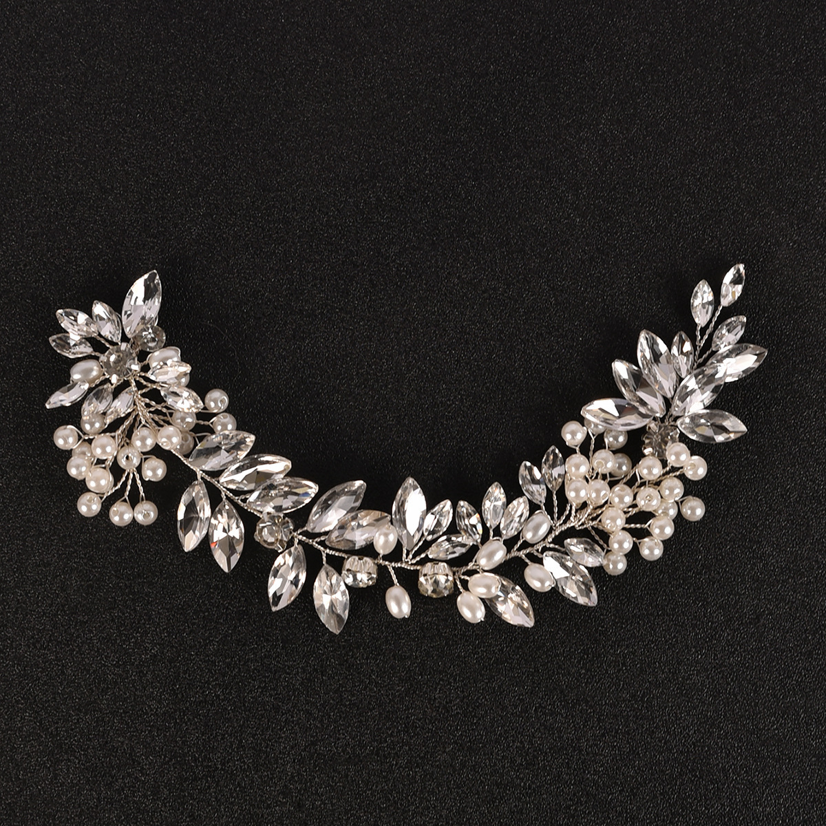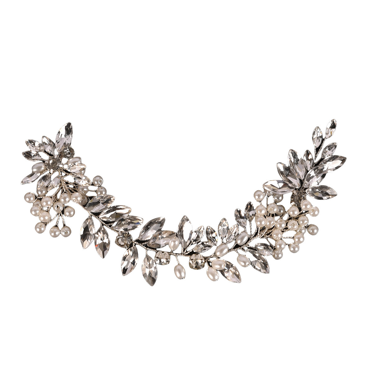 Brautkranz, Kunststoff Perlen, mit Messingdraht & Kristall, handgemacht, Modeschmuck & für Braut, Silberfarbe, 190x40mm, verkauft von PC