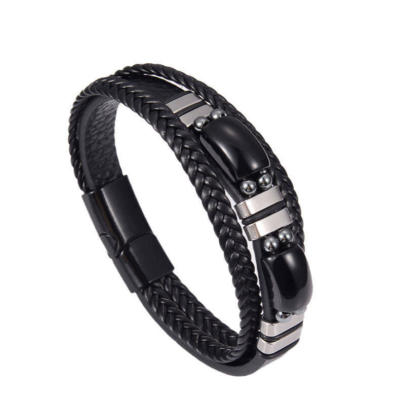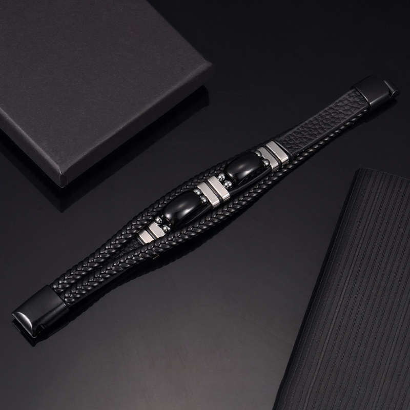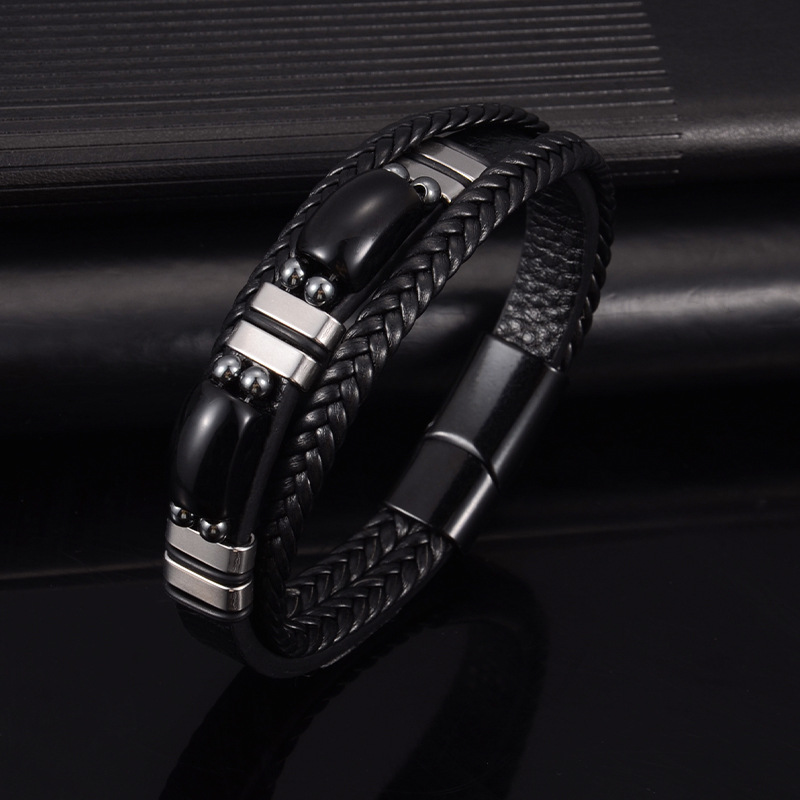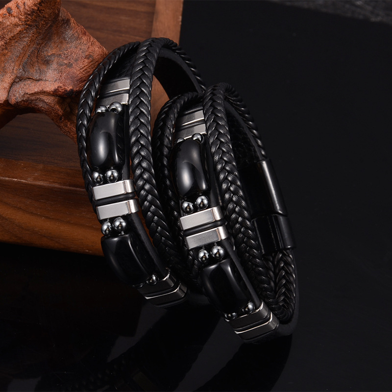PU Leder Armband, mit Obsidian & 304 Edelstahl, handgemacht, verschiedene Größen vorhanden & für den Menschen, schwarz, verkauft von PC