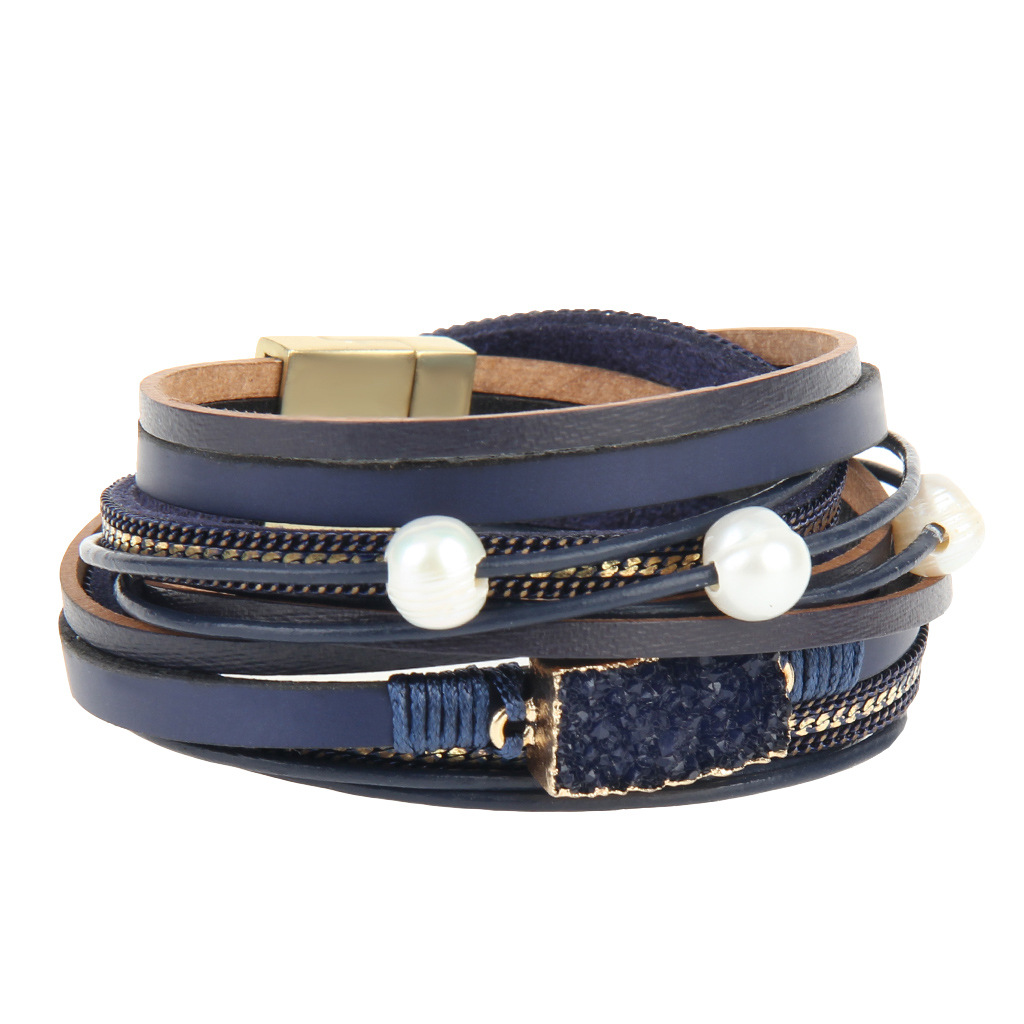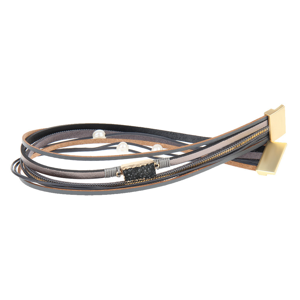 PU Leder Armband, mit Kunststoff Perlen & Zinklegierung, mehrschichtig & für Frau, keine, 385x23mm, verkauft von PC