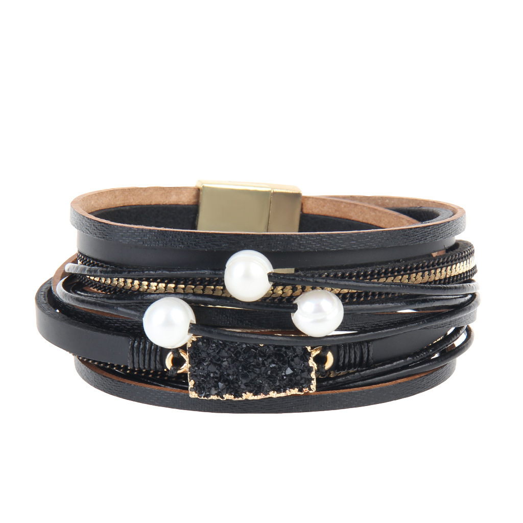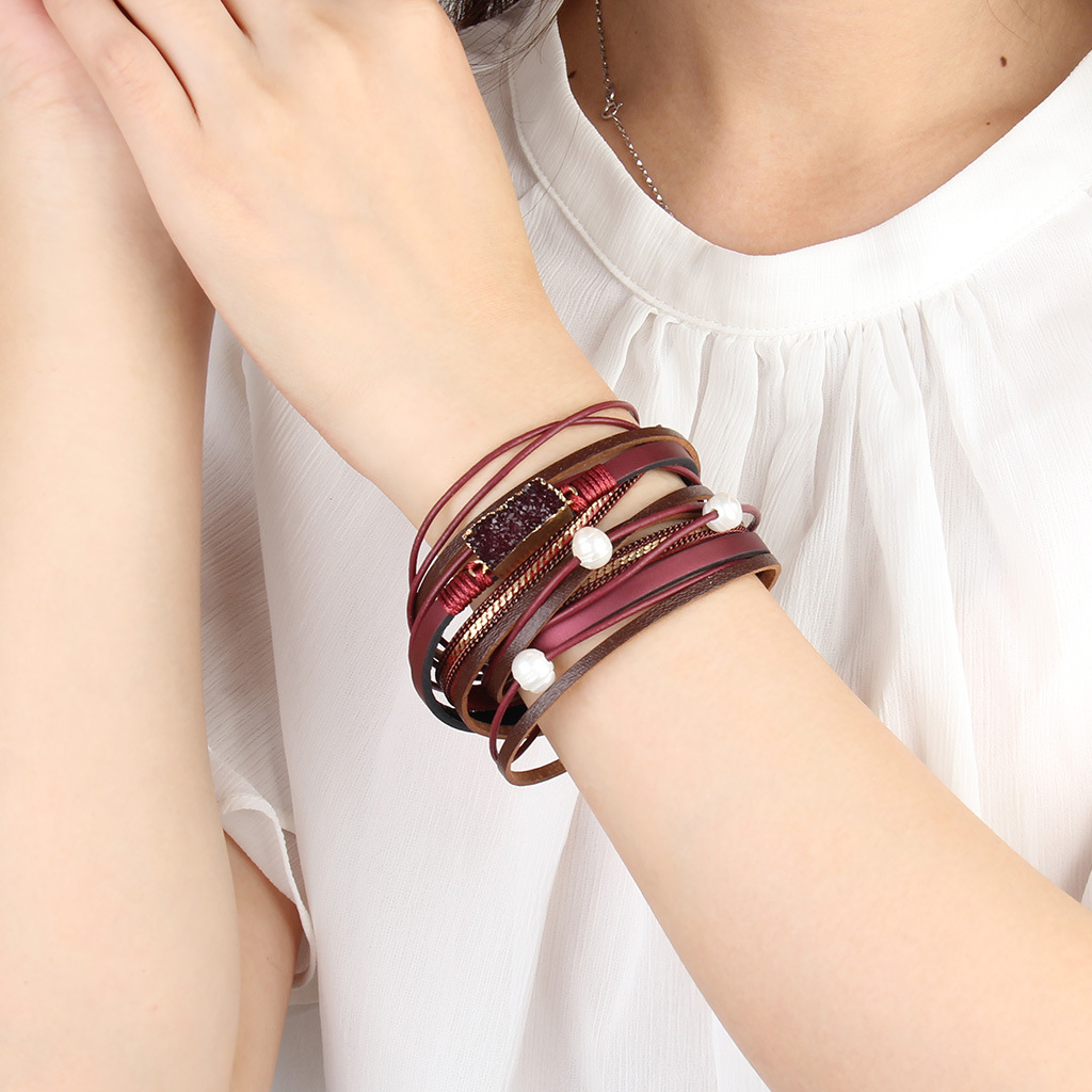 Edelstein Armband, mit Mikrofaser PU & 304 Edelstahl & Zinklegierung, handgemacht, mehrschichtig & verschiedene Stile für Wahl & für den Menschen, verkauft von PC