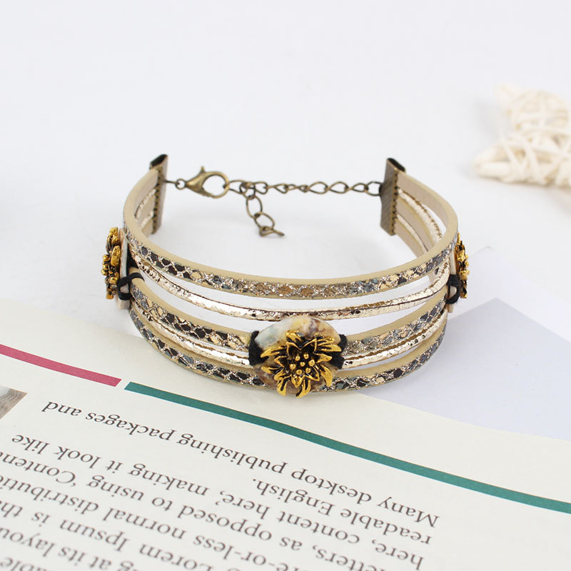 PU Leder Armband-Set, mit Zinklegierung, plattiert, verschiedene Stile für Wahl & für Frau, Länge:ca. 7.5 ZollInch, 5-6SträngeStrang/setzen, verkauft von setzen