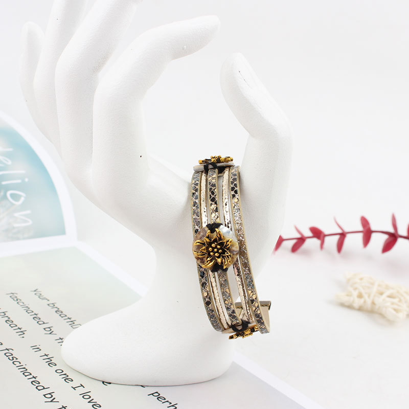 PU Schnur Armbänder, PU Leder, mit Non- magnetische Hämatit & Holz & Zinklegierung, plattiert, für Frau & 3-Strang, keine, 6mm, Länge:ca. 8.2 ZollInch, verkauft von Strang