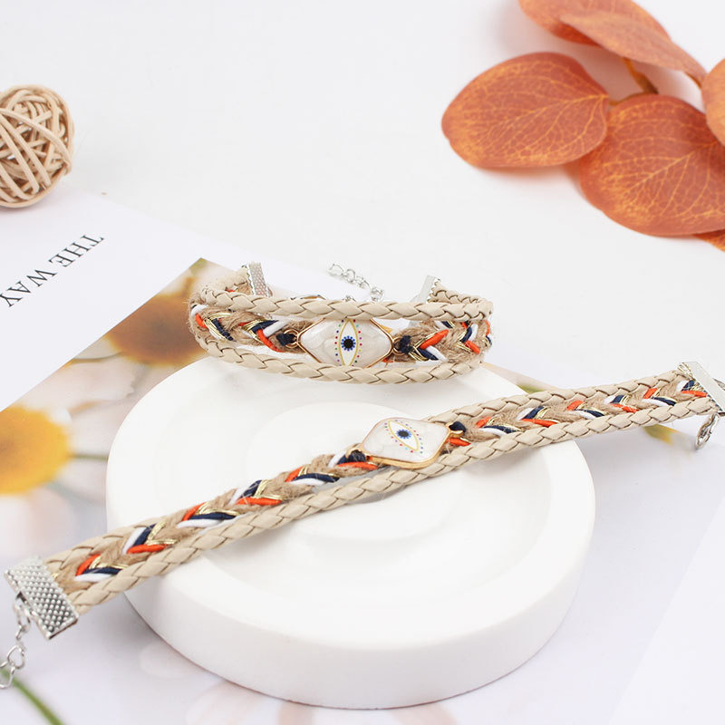 PU Schnur Armbänder, Zinklegierung, mit Hanfgarn & PU Leder & Messing & Emaille, plattiert, Modeschmuck, gemischte Farben, 20mm, Länge:25 cm, verkauft von PC