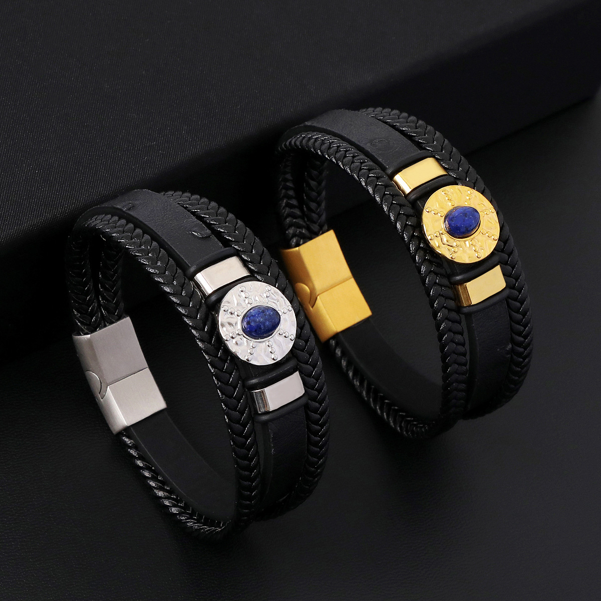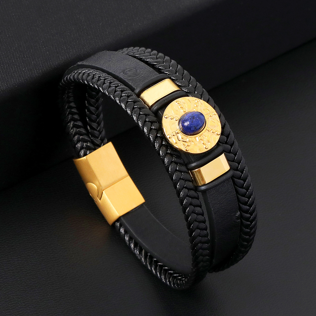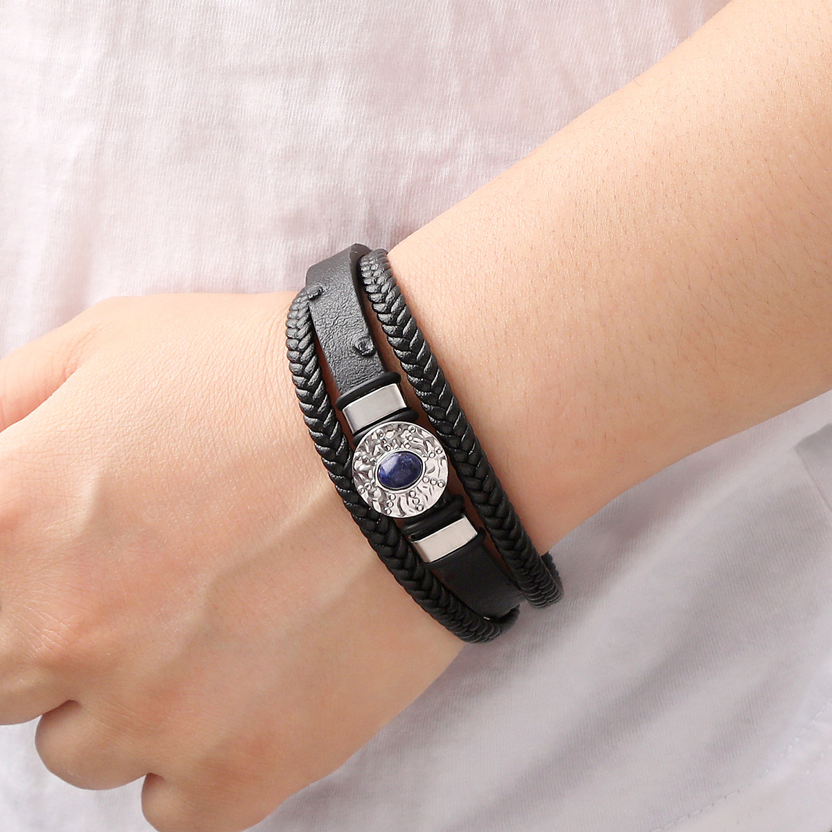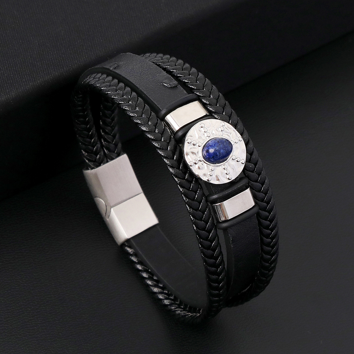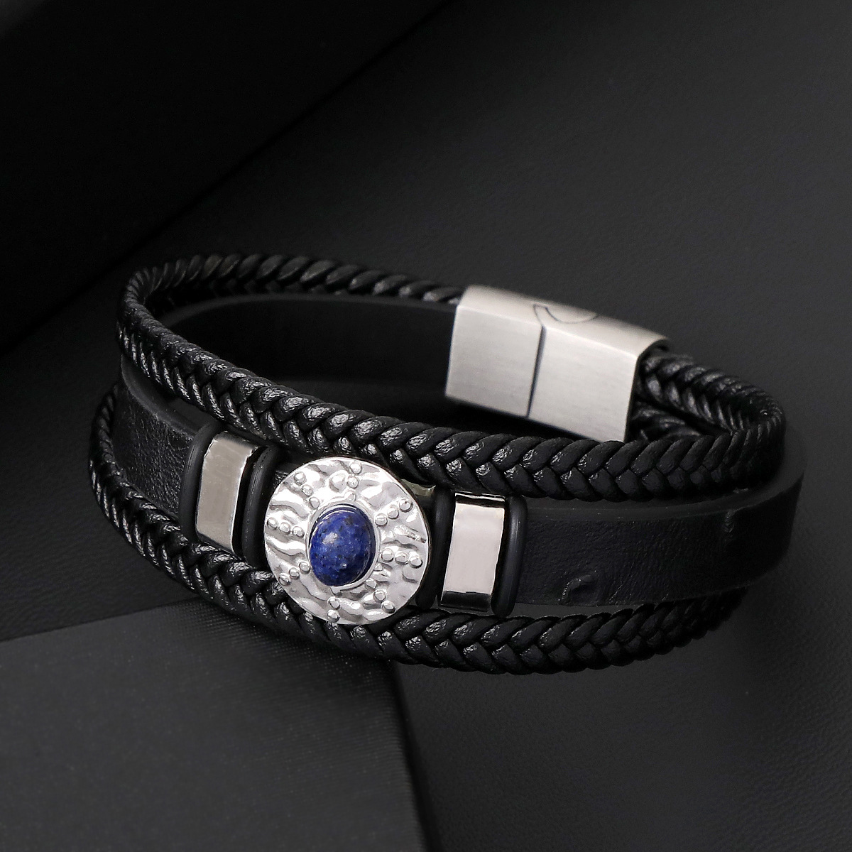 PU Schnur Armbänder, Mikrofaser PU, mit Lapislazuli & 316 Edelstahl & 304 Edelstahl, handgemacht, drei Schichten & Modeschmuck & für den Menschen, keine, Länge:21 cm, verkauft von PC
