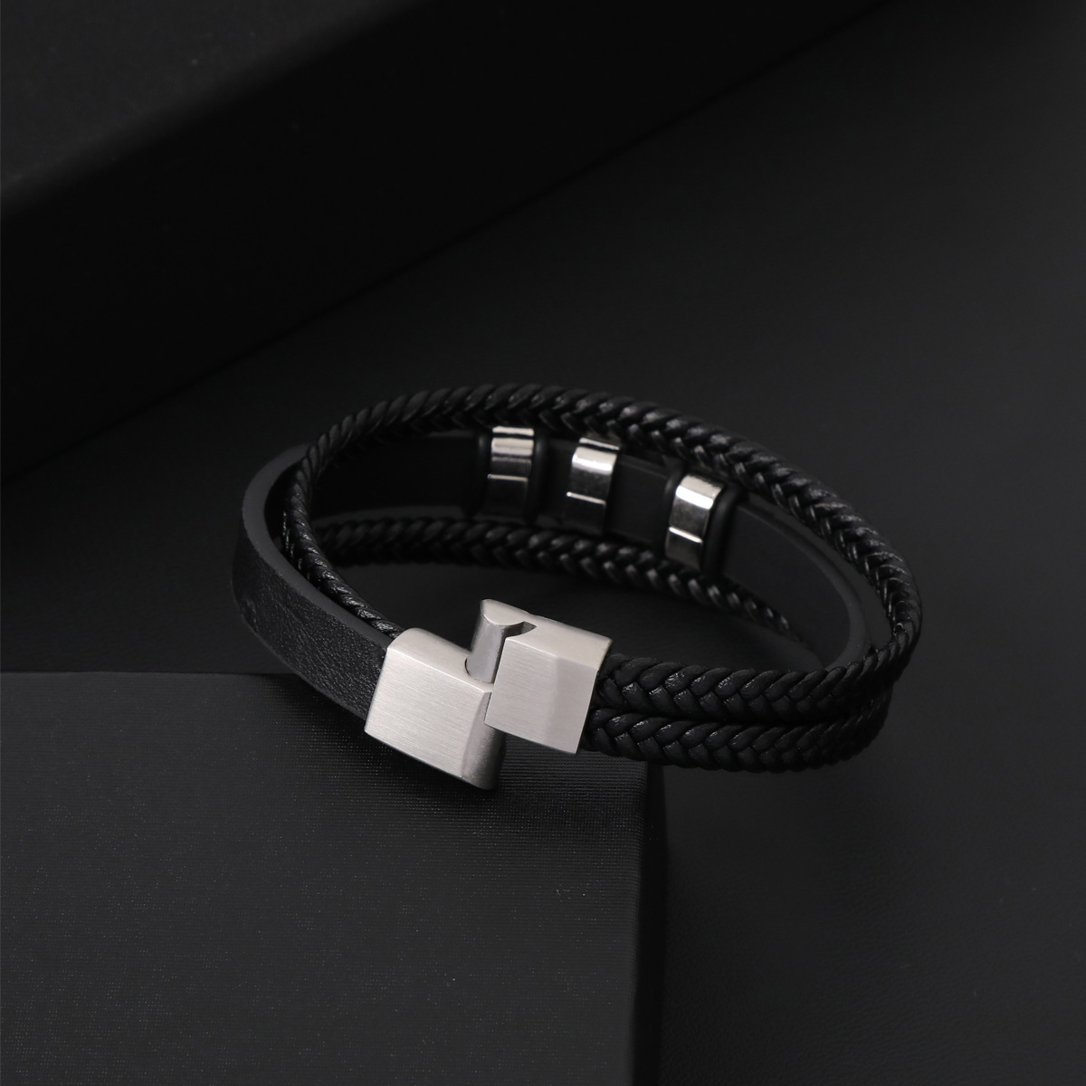 PU Schnur Armbänder, Zinklegierung, mit PU Leder & 304 Edelstahl, handgemacht, für den Menschen, schwarz, verkauft von PC
