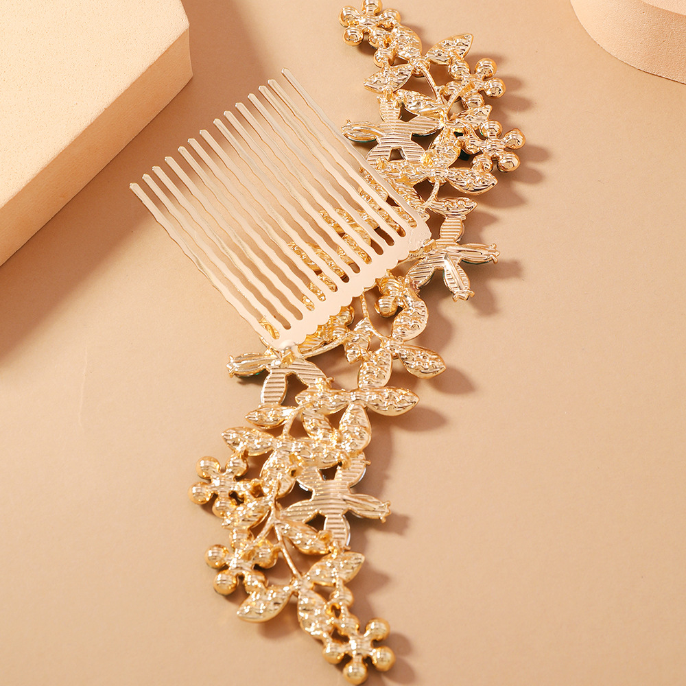 Dekoratives Haarkämmchen, Zinklegierung, goldfarben plattiert, Modeschmuck & mit Strass, goldfarben, verkauft von PC