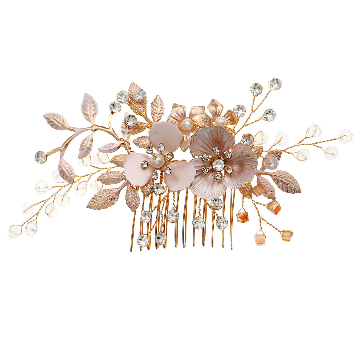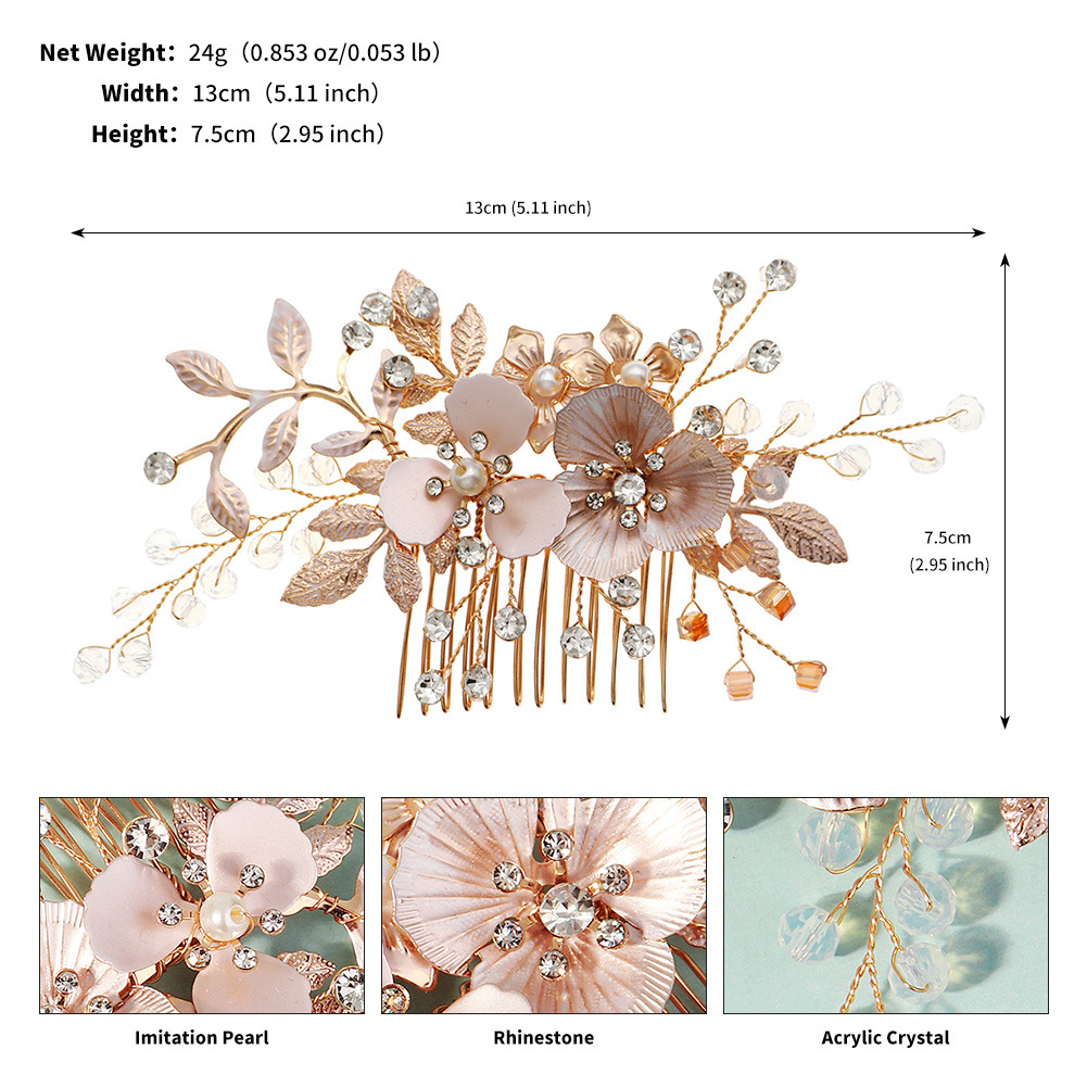 Dekoratives Haarkämmchen, Zinklegierung, mit Messingdraht & Strass & Kunststoff Perlen & Acryl, Blume, goldfarben plattiert, Modeschmuck & für Frau, 130x75mm, verkauft von PC