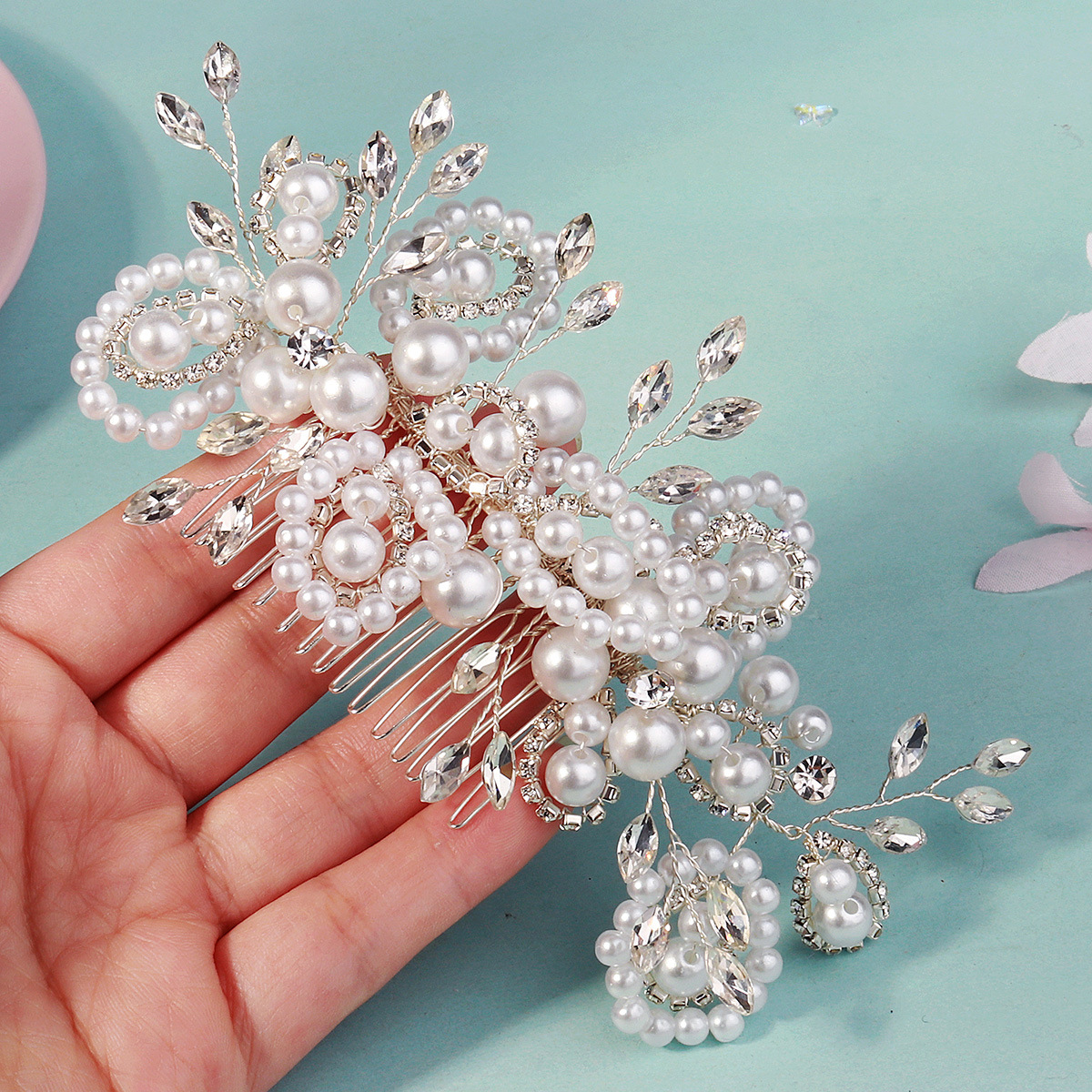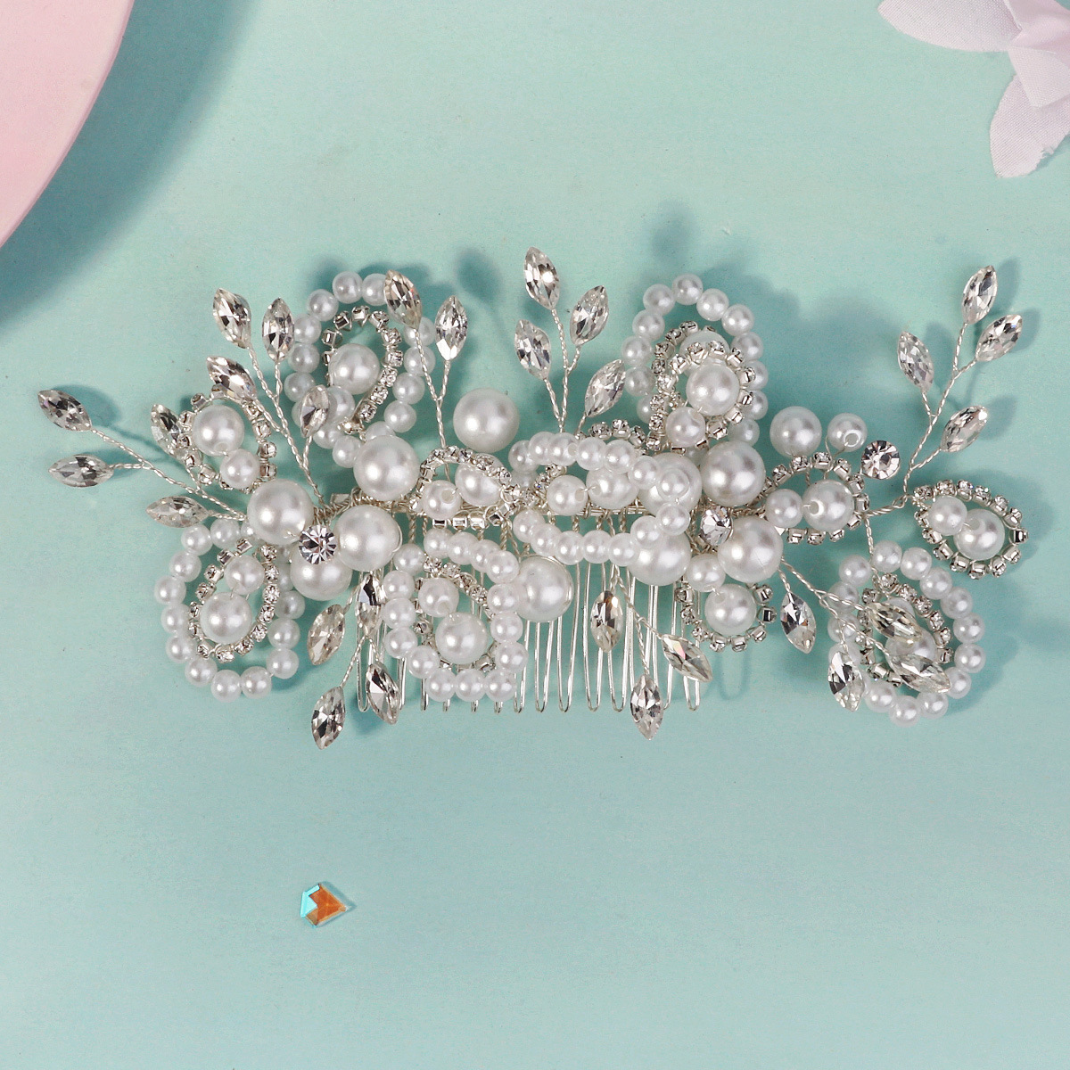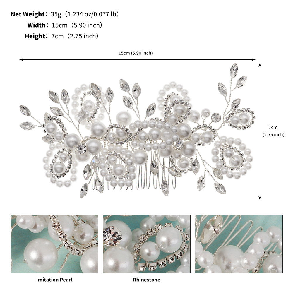 Dekoratives Haarkämmchen, Kunststoff Perlen, mit Messingdraht & Strass & Zinklegierung, silberfarben plattiert, Modeschmuck & für Braut & für Frau, 150x70mm, verkauft von PC