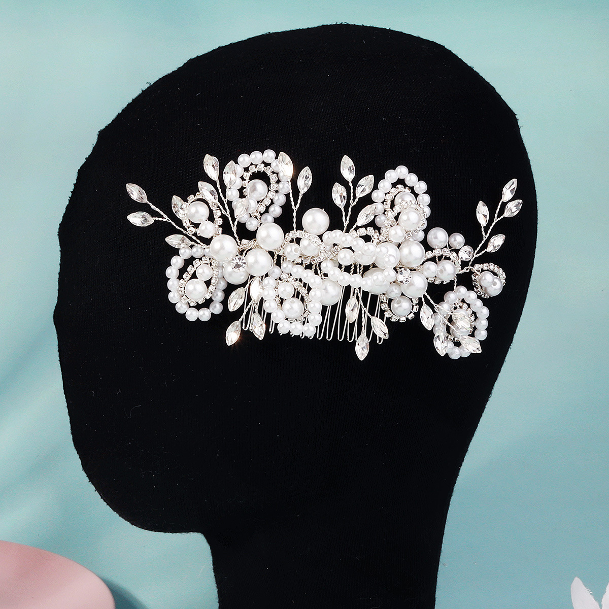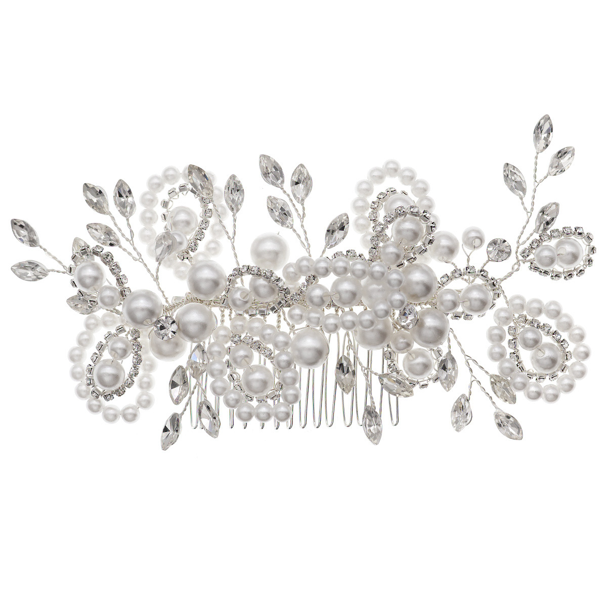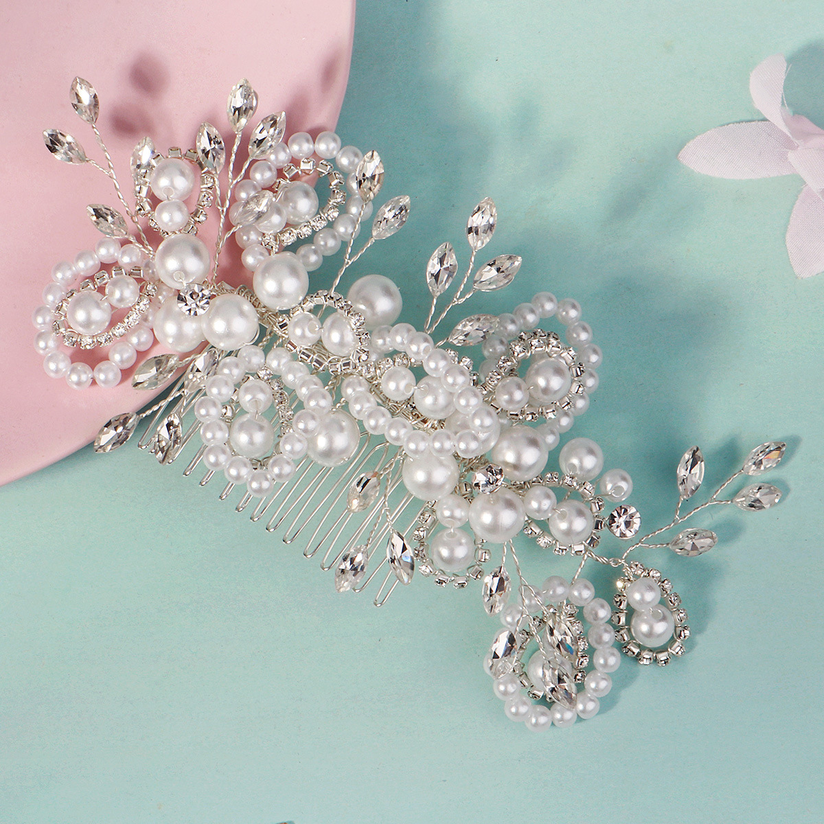 Dekoratives Haarkämmchen, Kunststoff Perlen, mit Messingdraht & Strass & Zinklegierung, silberfarben plattiert, Modeschmuck & für Braut & für Frau, 150x70mm, verkauft von PC