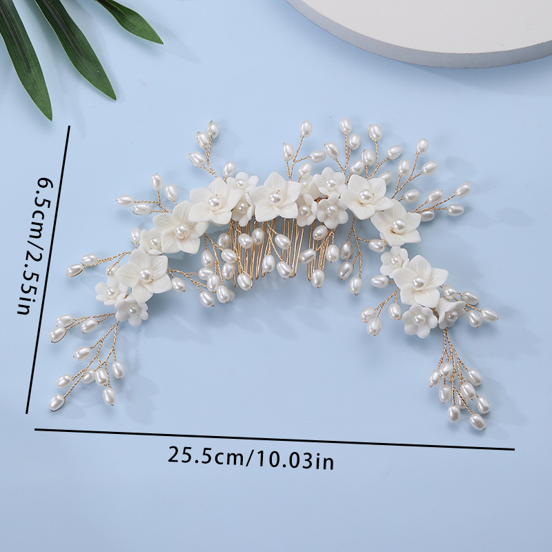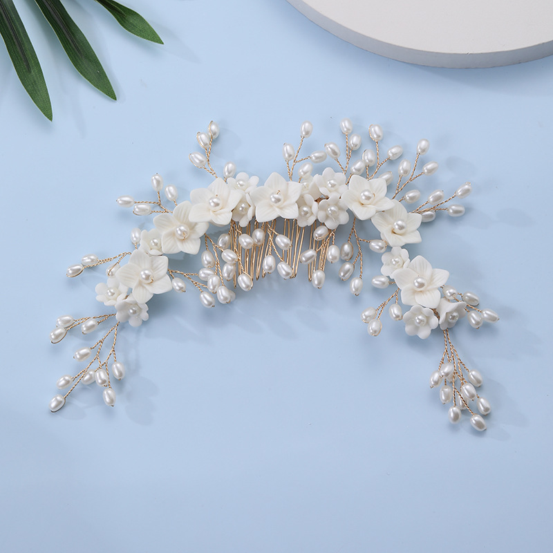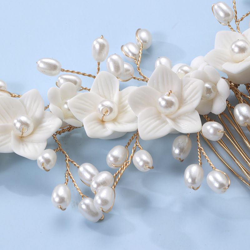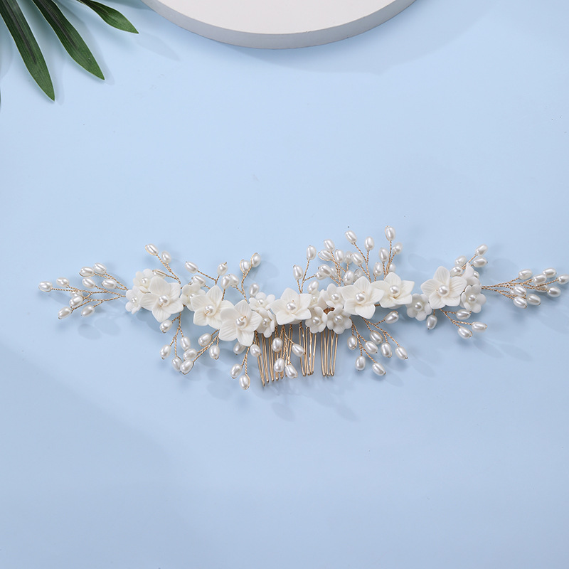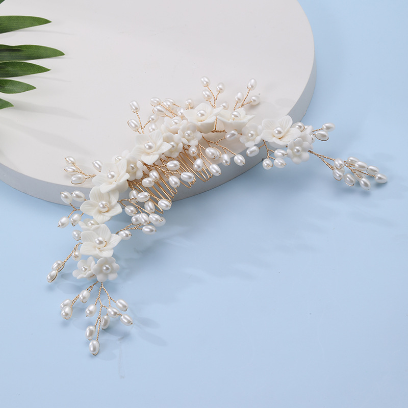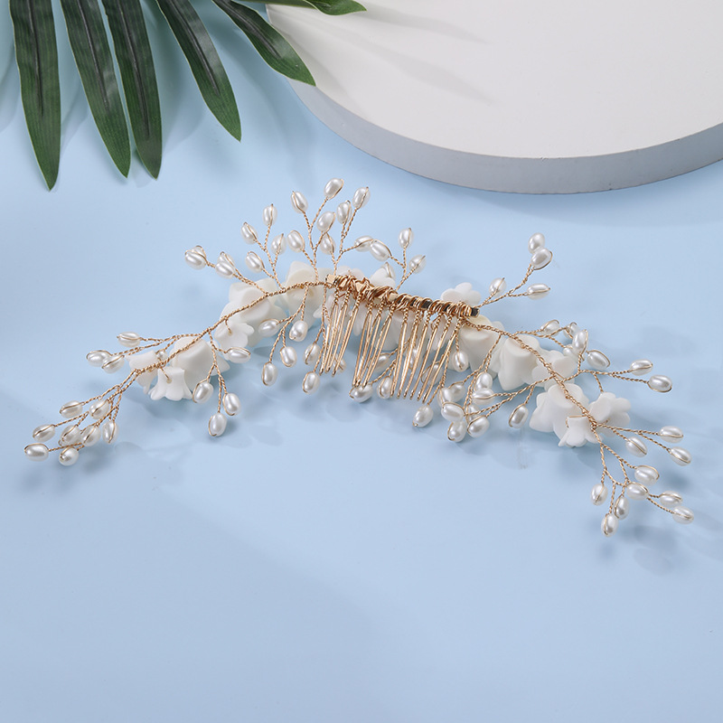 Dekoratives Haarkämmchen, Kunststoff Perlen, mit Messingdraht & Polymer Ton, handgemacht, Modeschmuck & für Frau, goldfarben, verkauft von PC