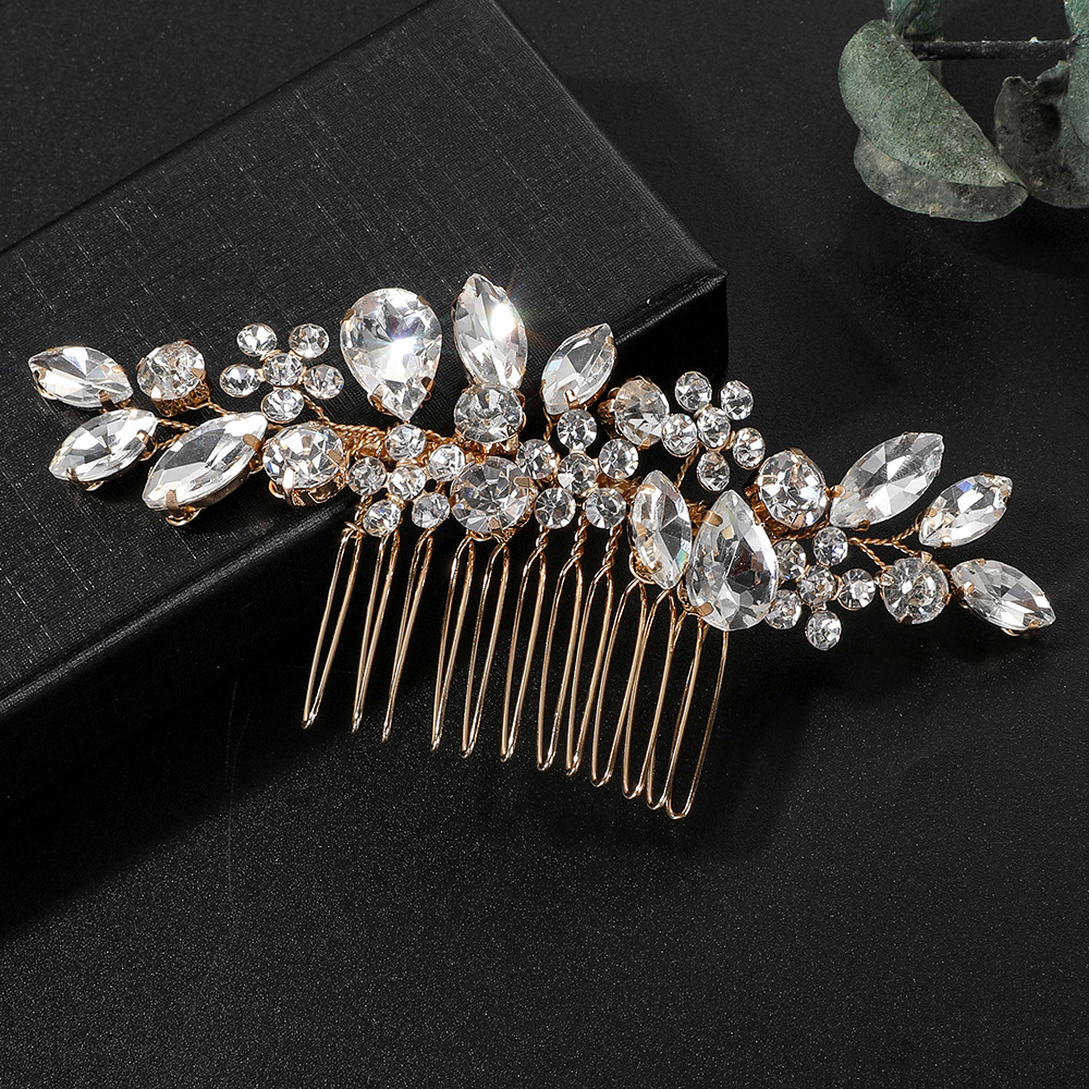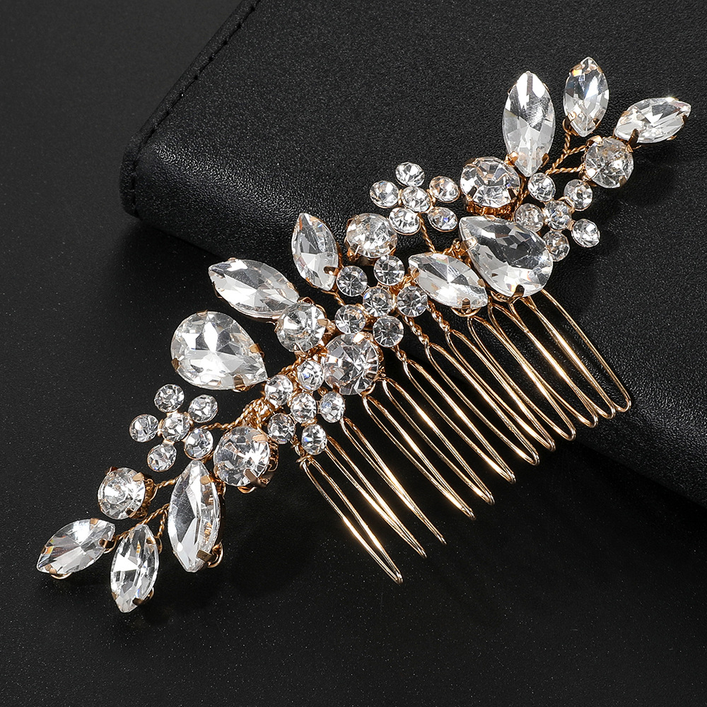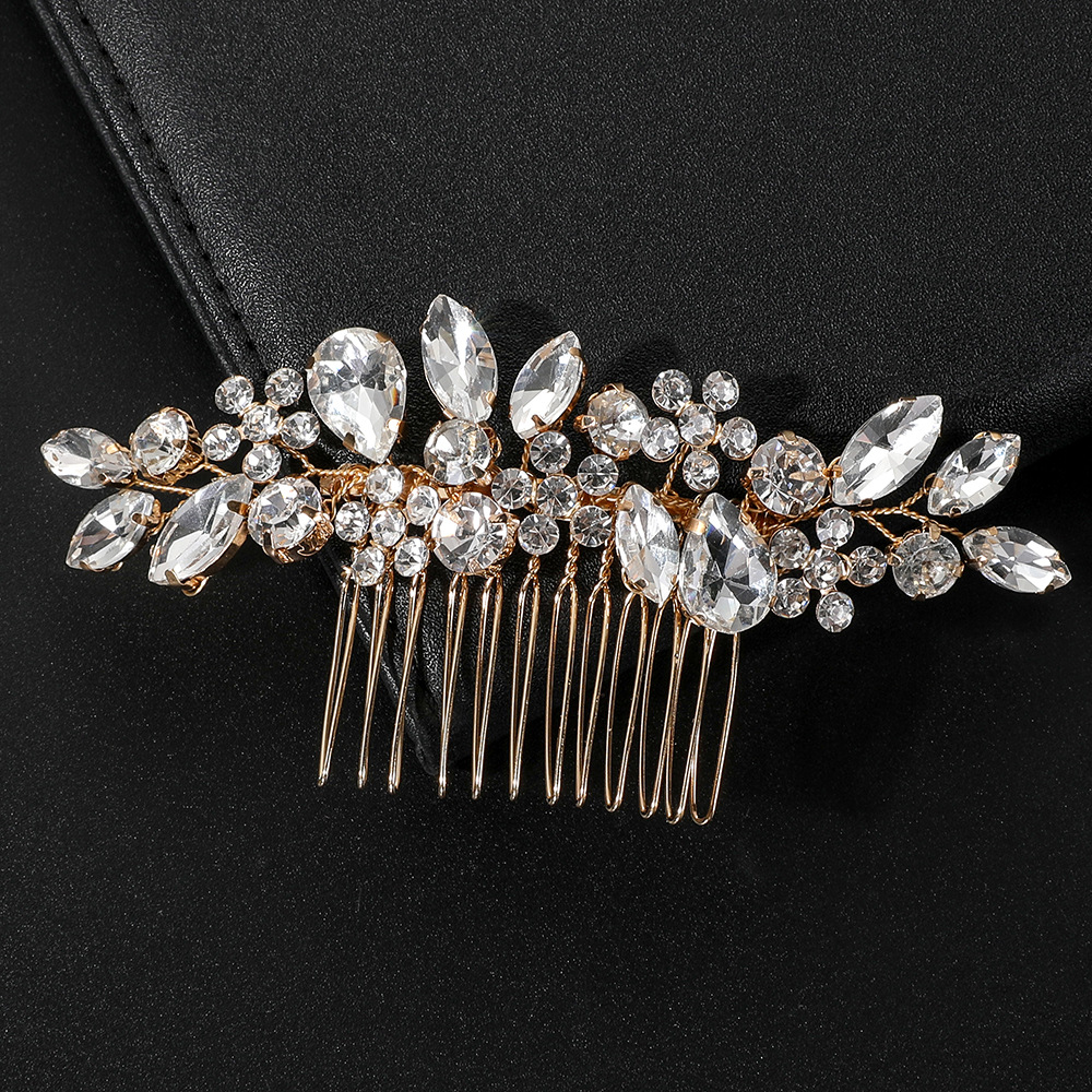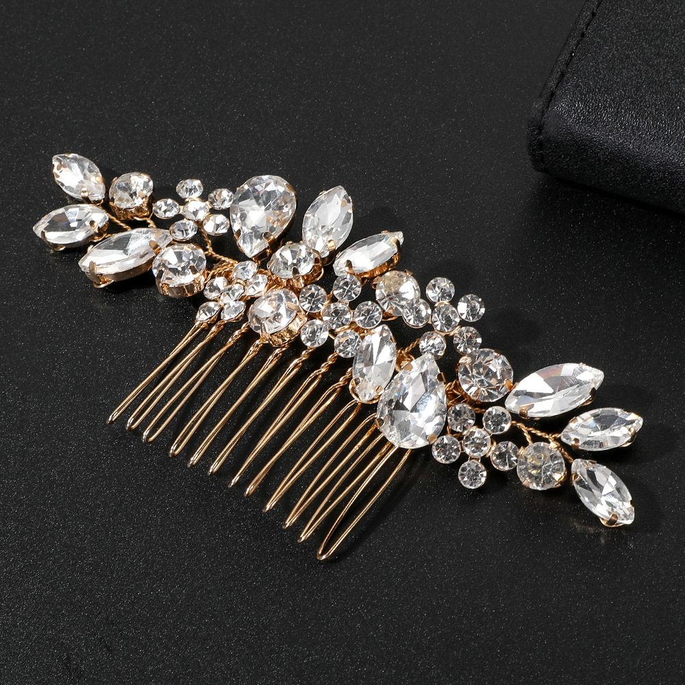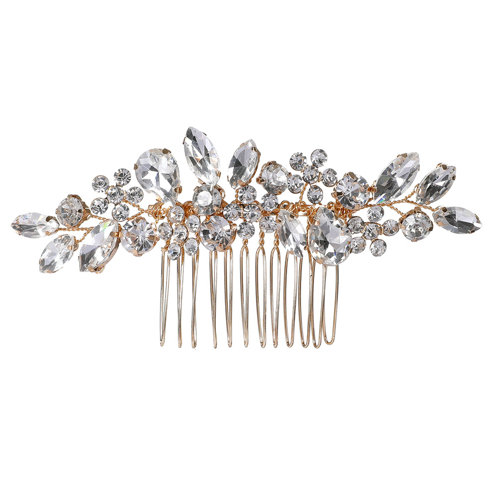 Dekoratives Haarkämmchen, Zinklegierung, mit Messingdraht & Kristall, handgemacht, Modeschmuck & für Frau, goldfarben, 100x70x5mm, verkauft von PC