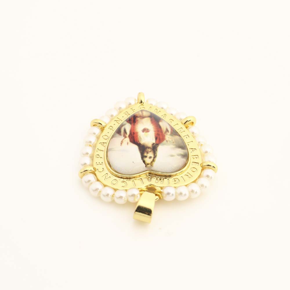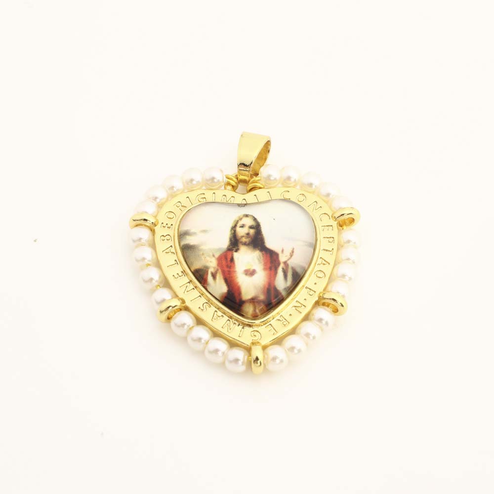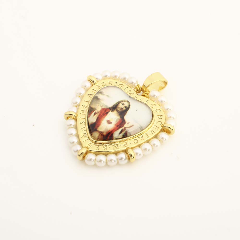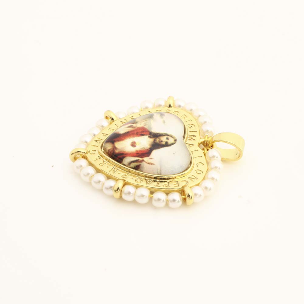 Messing Herz Anhänger, mit Kunststoff & Kunststoff Perlen, DIY, goldfarben, verkauft von PC