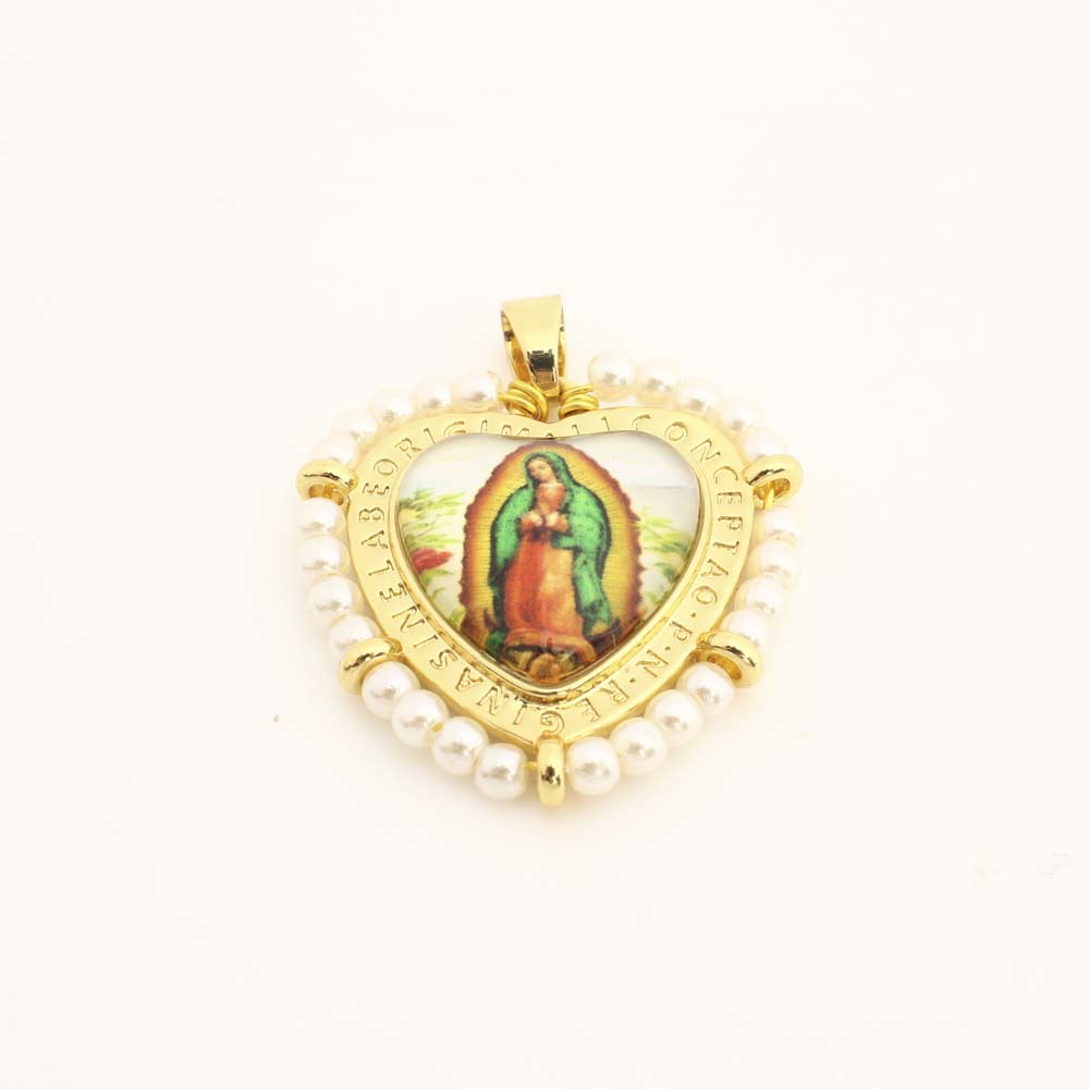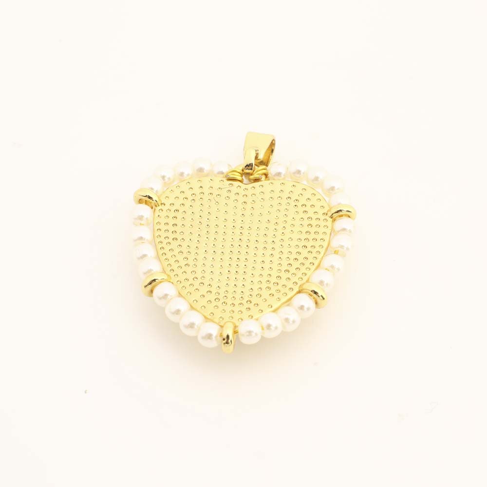 Messing Herz Anhänger, mit Kunststoff & Kunststoff Perlen, DIY, goldfarben, verkauft von PC