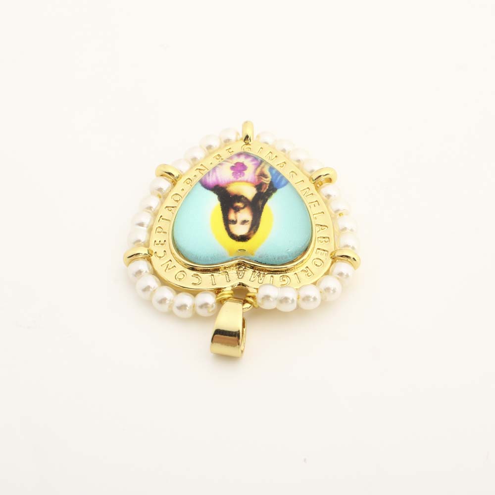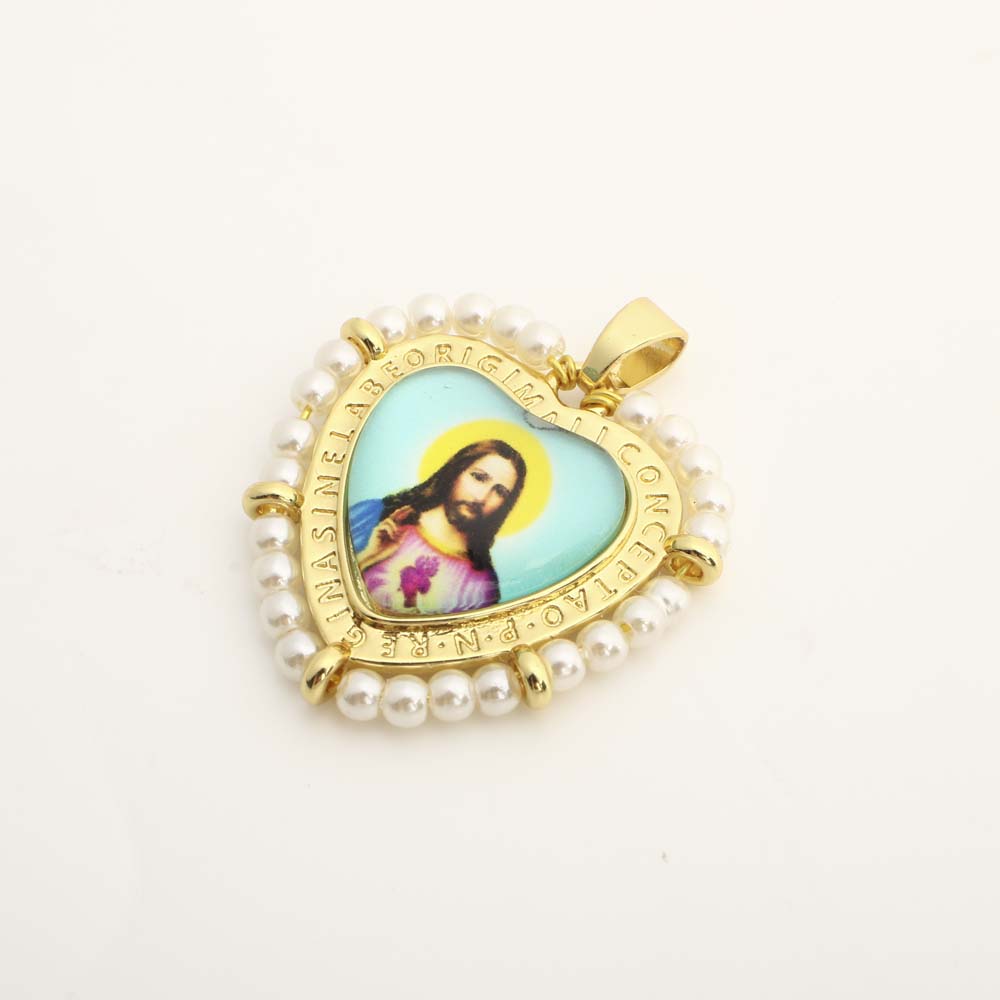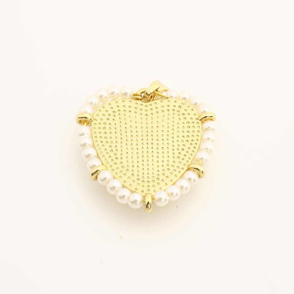 Messing Herz Anhänger, mit Kunststoff & Kunststoff Perlen, DIY, goldfarben, verkauft von PC