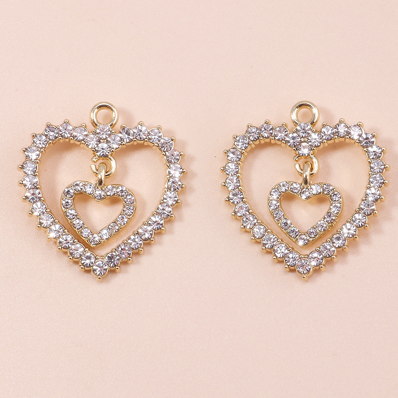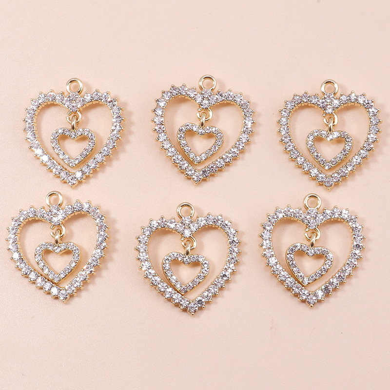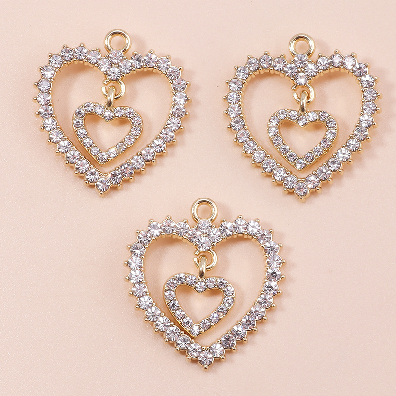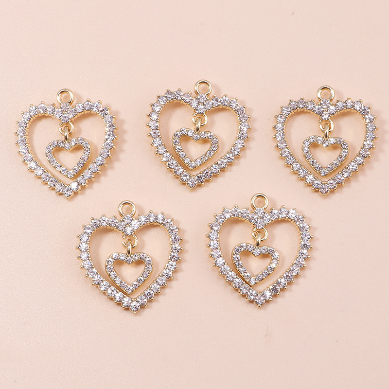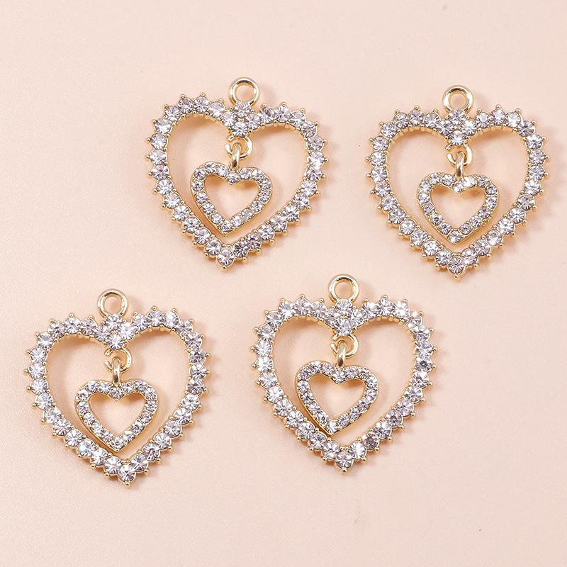 Zink Legierung Strass Anhänger, Zinklegierung, Herz, plattiert, DIY & mit Strass, 4PCs/Tasche, verkauft von Tasche