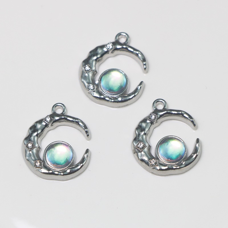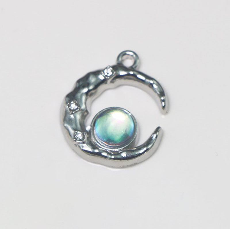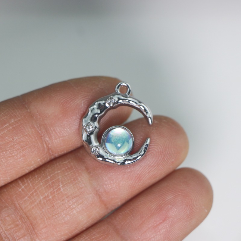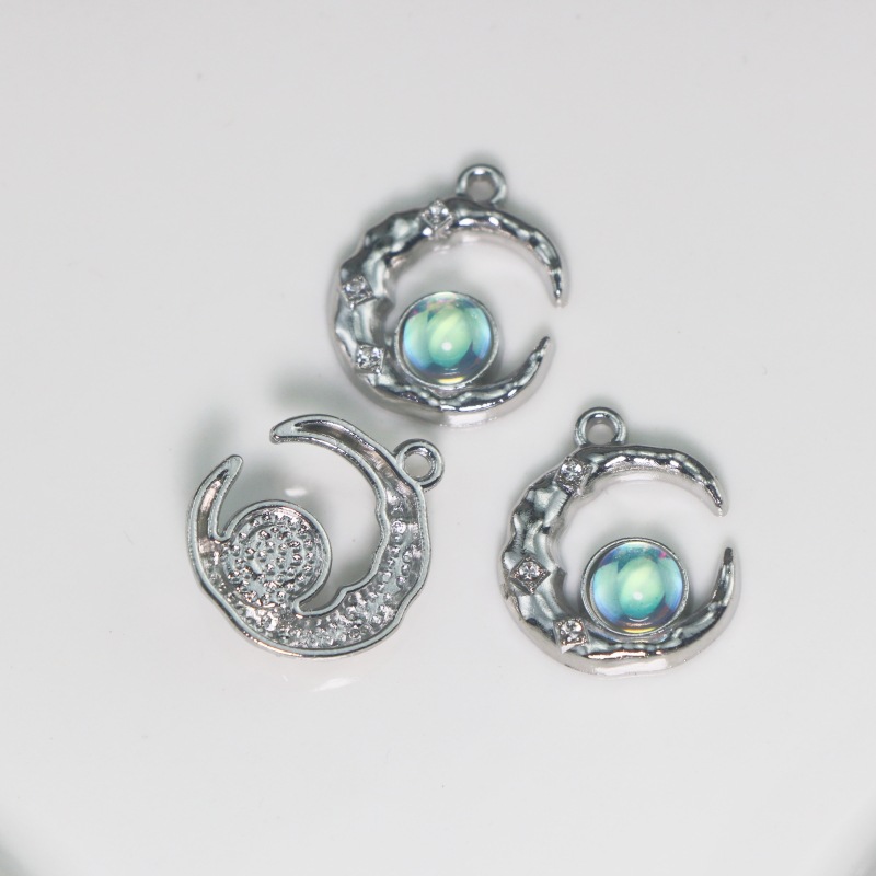 Zink Legierung Strass Anhänger, Zinklegierung, Mond, silberfarben plattiert, DIY & mit Strass, 20x16x5mm, verkauft von PC
