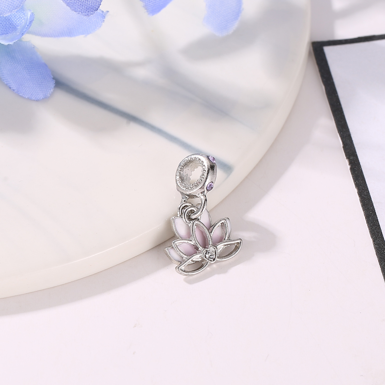 Zink Legierung Strass Anhänger, Zinklegierung, Lotus, plattiert, DIY & Emaille & mit Strass, 15x20mm, verkauft von PC