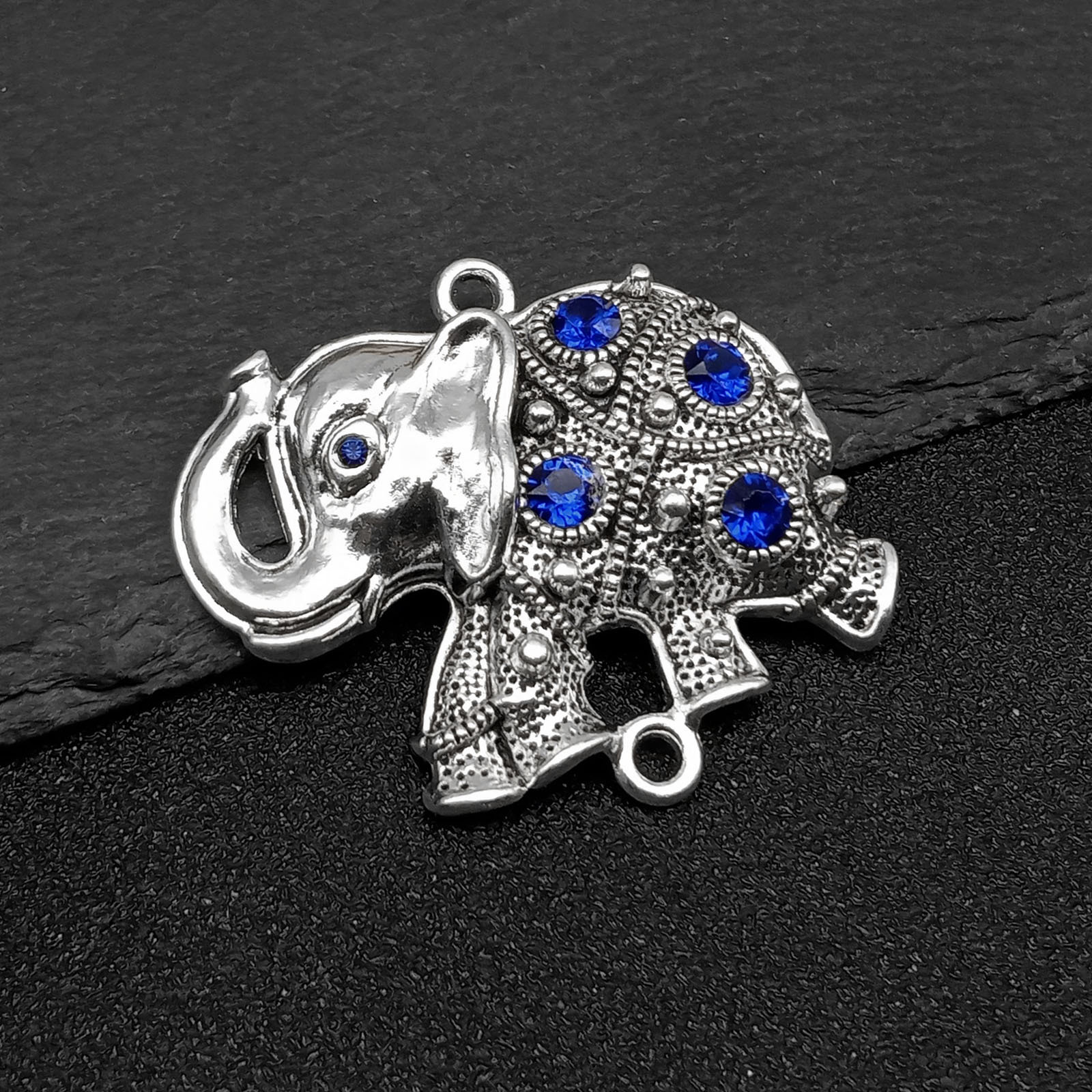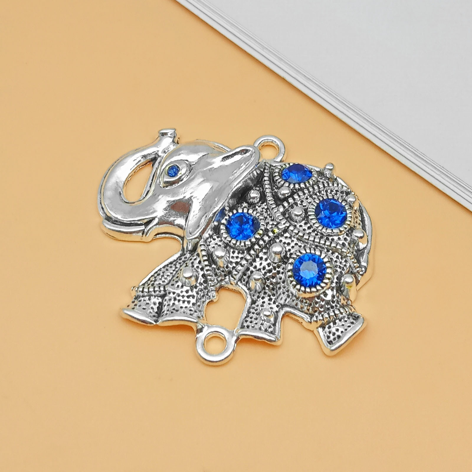 Zink Legierung Strass Anhänger, Zinklegierung, Elephant, silberfarben plattiert, DIY & mit Strass & Doppelloch, Silberfarbe, verkauft von PC