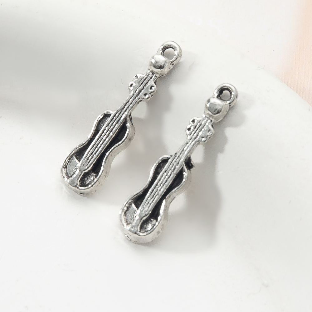 Musikinstrument Zinklegierung Anhänger, Gitarre, silberfarben plattiert, DIY, Silberfarbe, 6.60x3x25.66mm, verkauft von Tasche