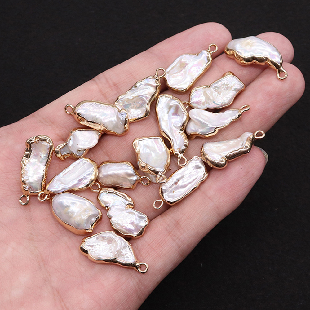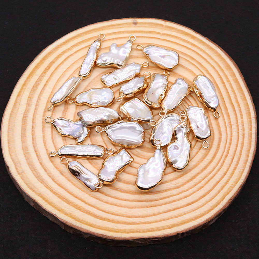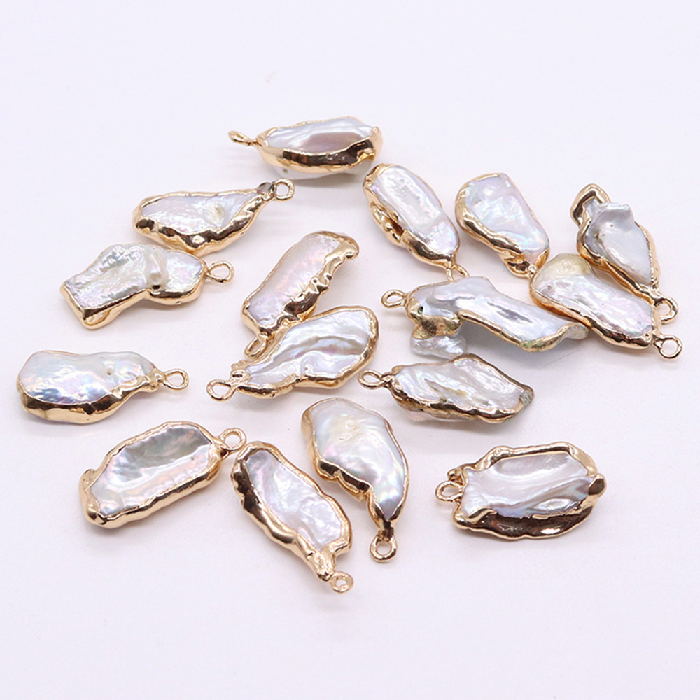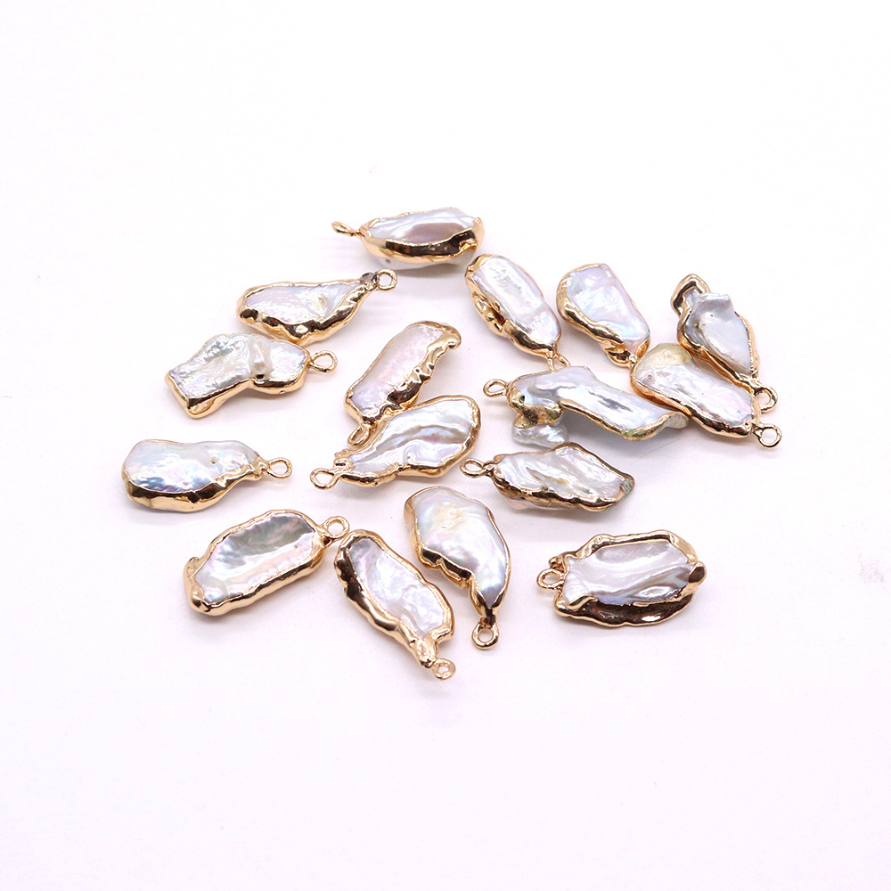 Süßwasser-Zuchtperlen Anhänger, Natürliche kultivierte Süßwasserperlen, Unregelmäßige, goldfarben plattiert, DIY, weiß, 11x23mm, verkauft von PC